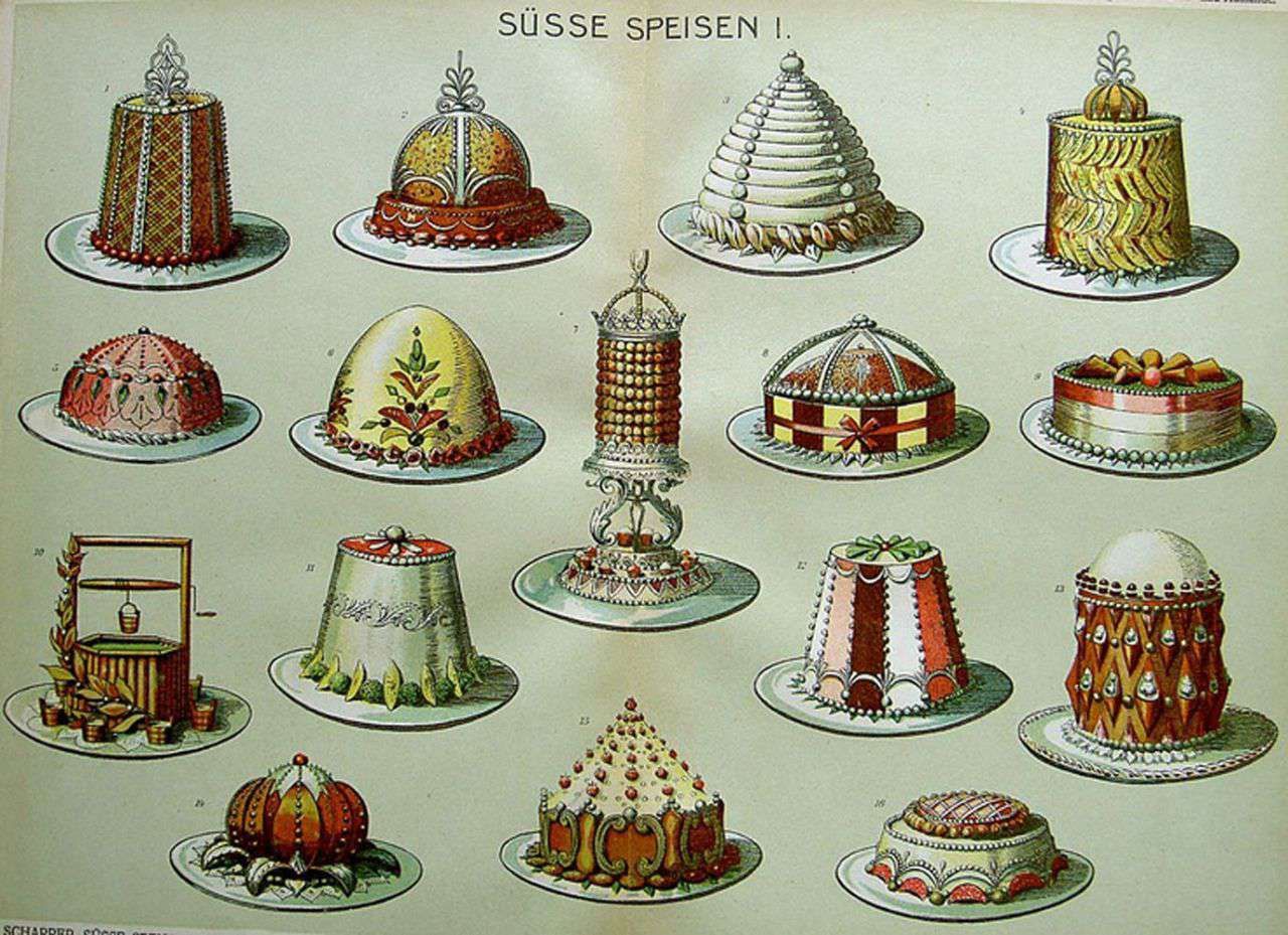 카렘의 파이와 케이크 등 디저트 디자인, 그는 디저트 분야에 특출한 재능을 선보였으며 디저트를 만드는 일은 건축의 설계와 비슷하다고 생각했다.