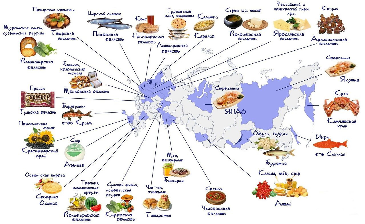 러시아의 음식문화는 광대한 영토를 바탕으로, 다양한 민족과 문화가 공존하며 여러 문화의 다양성을 가진 음식문화를 가진다. 러시아의 음식문화는 다양한 외부의 영향, 그 중에서도 몽골 제국과의 교류, 유럽과의 상호작용을 통해 다양한 조리법과 재료가 소개되었다. 이러한 과정에서 러시아 요리는 독특한 풍미와 스타일을 발전시켰다.