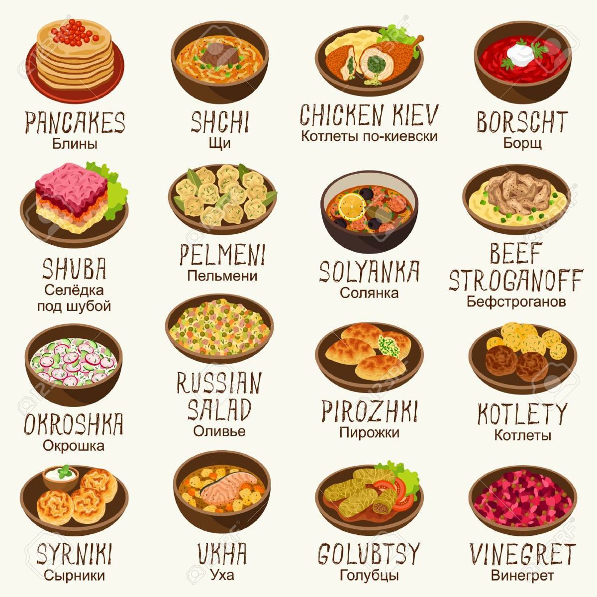 러시아인들에게는 빵과 소금이 가장 기본적이면서도 중요한 음식으로 통한다. 그리고 전통적으로 러시아 요리는 칼로리가 높은 특징을 가지며 추운 겨울철에 대비하기 위해 고기, 생선, 곡물, 채소 등을 주로 사용하며, 특히 발효 식품이 중요한 역할을 한다.