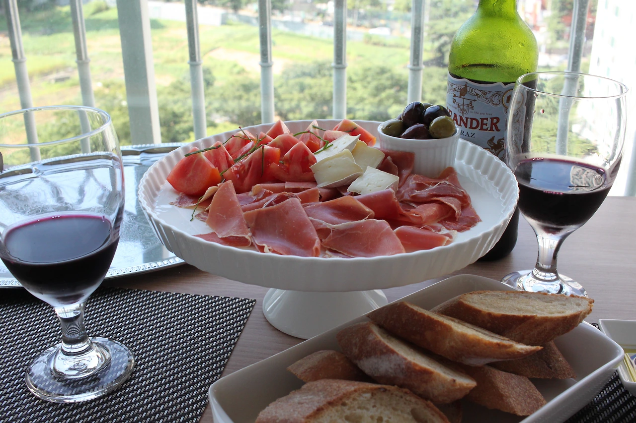 얼마 전 대형마트에서 세일이라 구입한 하몽을 넓게 펴서 담고, 냉장실의 차가움을 안고 있는 시원한 토마토를 물에 씻어 한입에 먹기 좋게 자릅니다. 짭짤한 올리브도 조그마한 볼에 담아내고 부드러운 브리 치즈와 샹그리아 와인이면 좋겠지만 아쉬운 대로 차가운 레드와인 한잔 준비하면 시원하게 아침을 즐길 수 있을 듯합니다.