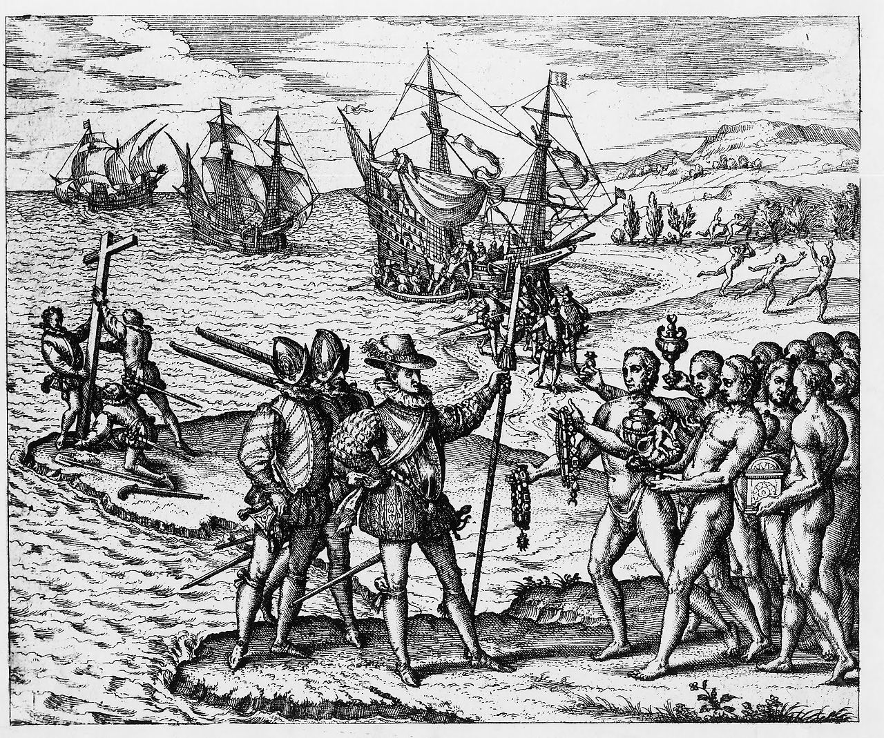 1492년 크리스토퍼 콜럼버스가 카리브해에 도착합니다.