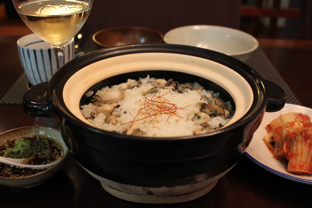 드라마 심야식당과 영화 리틀 포레스트에 등장한 '이중 뚜껑 밥솥'('도나베'라고 불립니다)에 굴밥을 합니다.