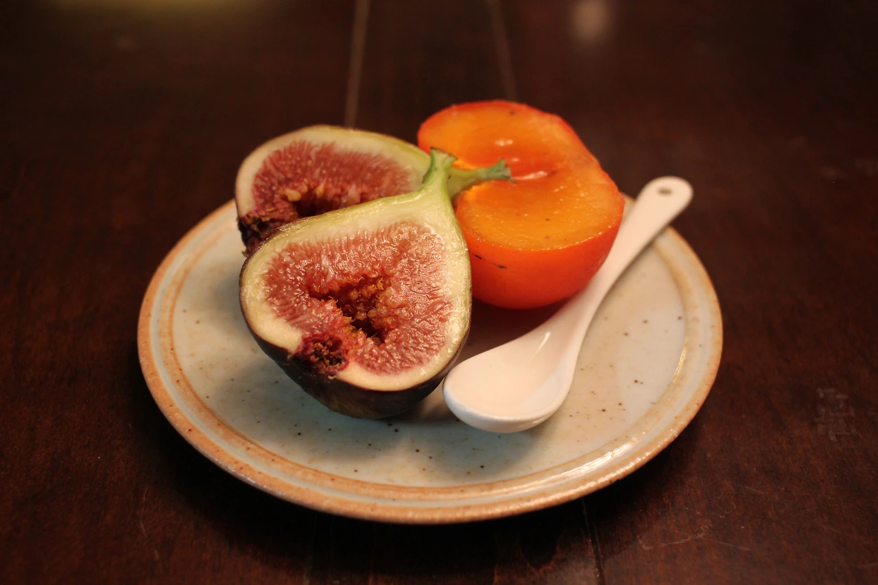 굴을 사 오면서 같이 들고 온 계절 과일들... 연시와 무화과.