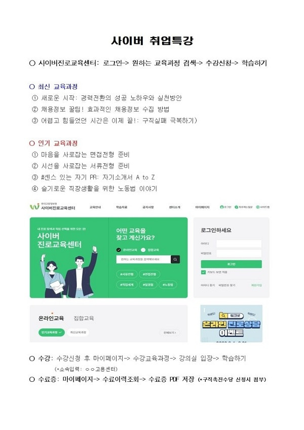 아무래도 편하게 들을 수 있는 사이버진로교육센터-취업특강(이하 사이버 취업특강)을 많이 선호한다.
