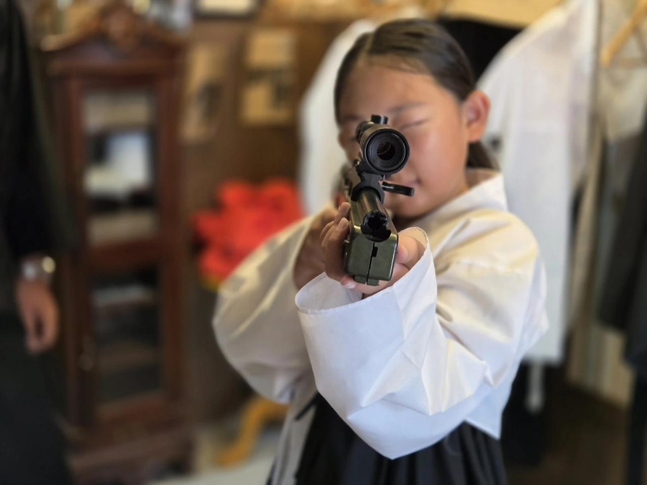 영화 암살을 본 딸은 독립투사 저격수 안윤옥을 흉내 냈다. 옷을 여미고 모형 총을 쥐자 장난기 가득하던 얼굴이 금세 진지해졌다. 인공조명 아래였지만, 그 눈빛만큼은 영화보다 더 현실적으로 다가왔다.