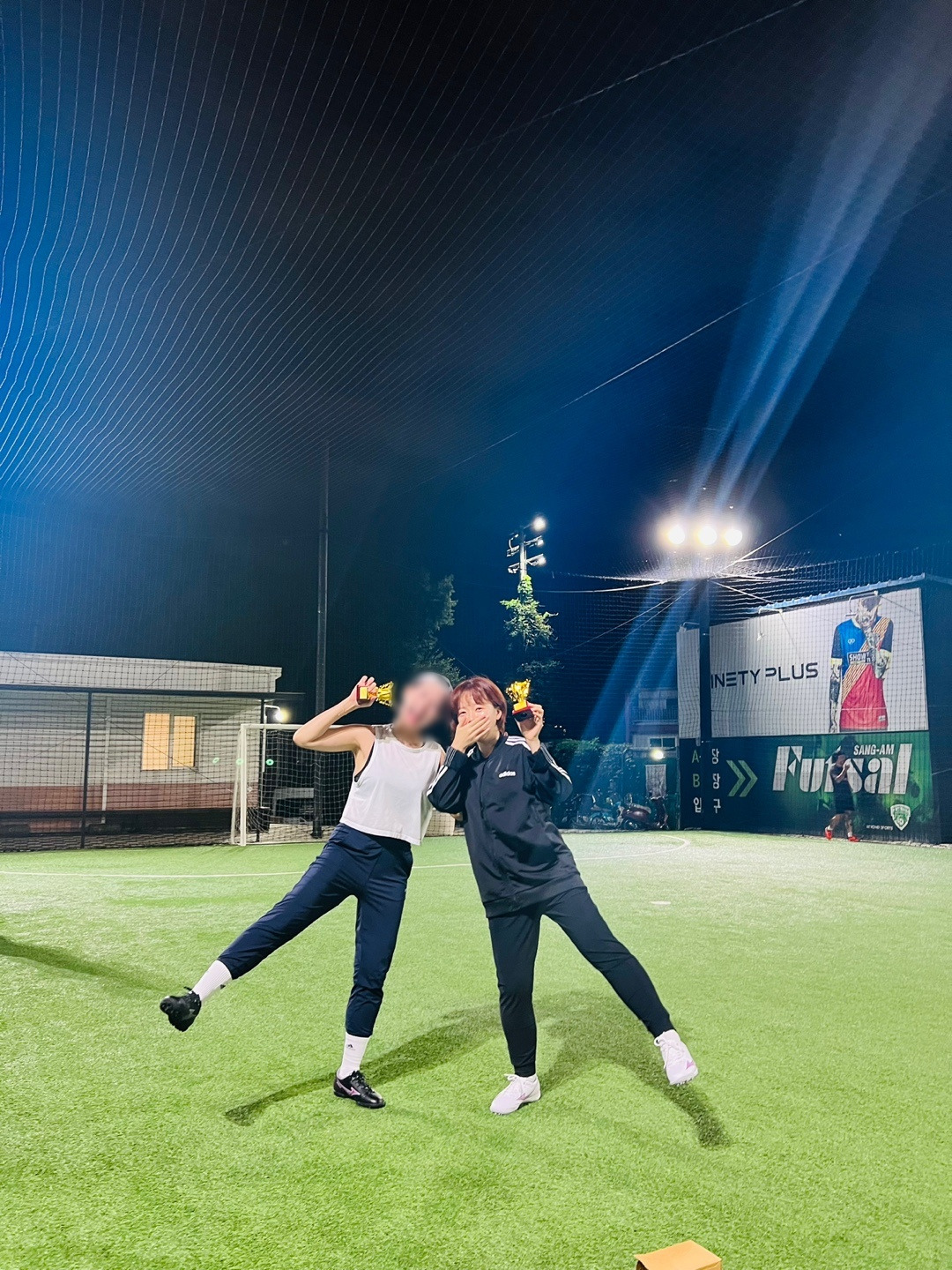 개인 운동이었으면 이렇게 오래 못했을 것 같기도 해요. 축구는 팀에 도움이 되어야 하고 같이 성장하고 싶으니까 ‘내가 뭘 더 해야 하지?’ 이런 걸 생각하게 되면서 정말 많이 움직이게 됐어요. 축구를 안 했으면 운동할 생각을 못했을 것 같기도 해요. 딱히 운동을 좋아하는 애도 아니었으니까요. 우연한 계기긴 했지만 축구를 시작한 것에 후회가 없어요. 정말 잘 시작했어요.