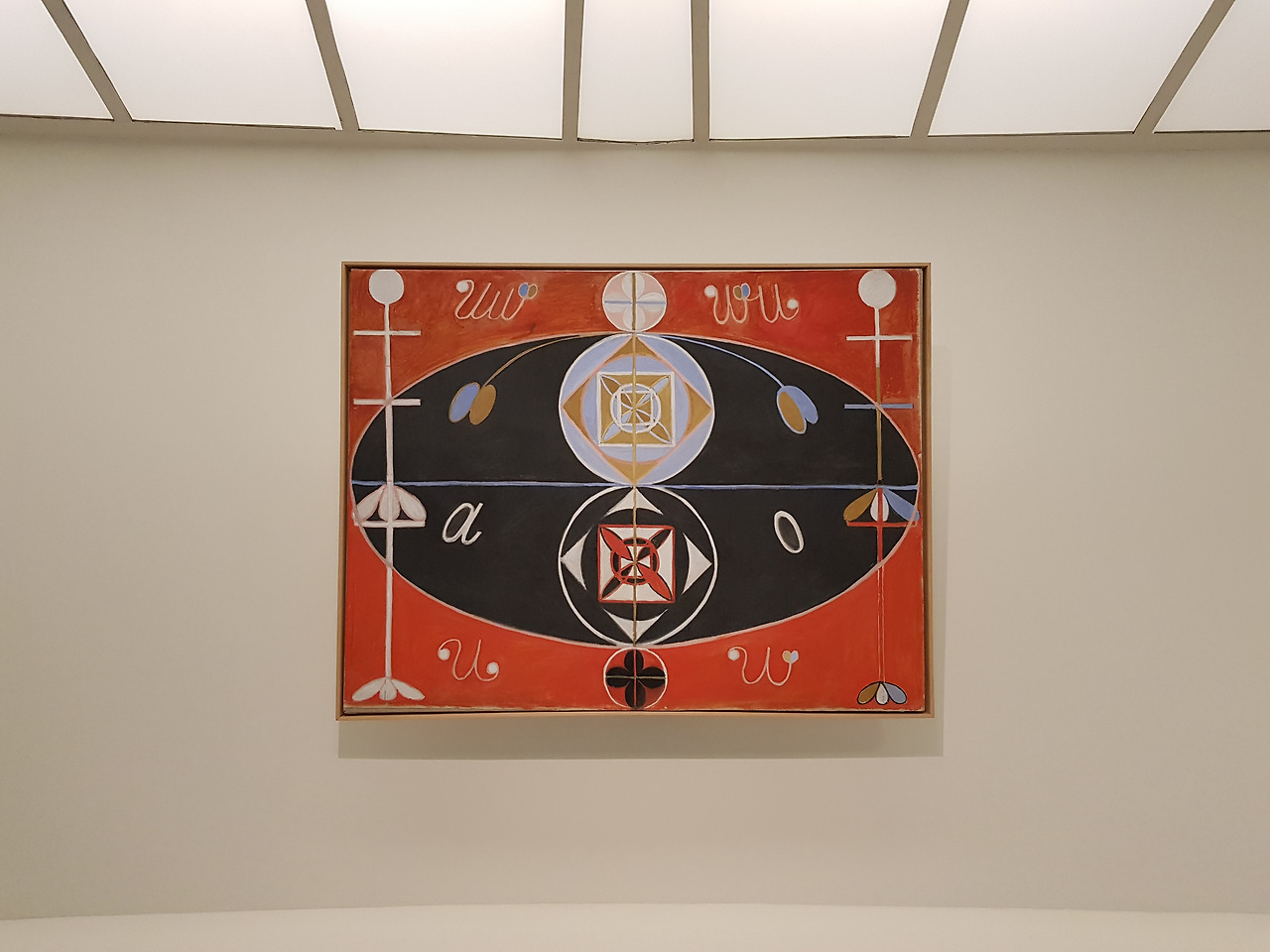 무려 사후 42년 만인 1986년에야 비로소 그녀의 작품 일부가 미국 로스앤젤레스 카운티 미술관 기획전에서 처음 대중에 공개되었다. 그리고 2013년 자신의 조국인 스웨덴 스톡홀름 현대미술관에서 '추상미술의 선구자(A pioneer of Abstraction)'라는 전시가 개최되었는데, 이 전시는 노르웨이, 스페인, 덴마크, 독일 베를린까지 순회하며 관객 100만 명이 찾는 대흥행을 이뤘다고 한다. 내가 다녀온 뉴욕 구겐하임 전시도 그 연장선상의 전시였던 것이다.