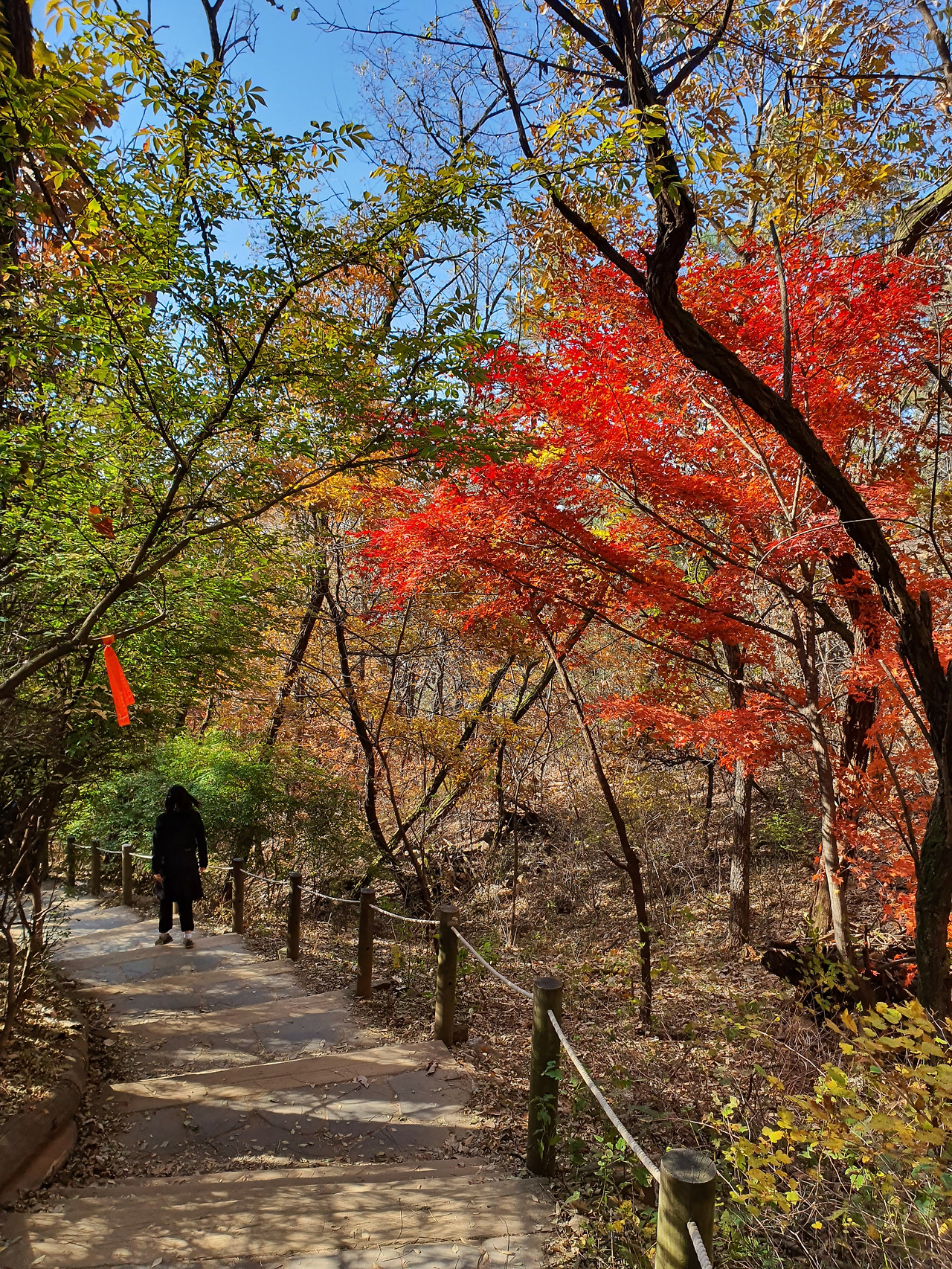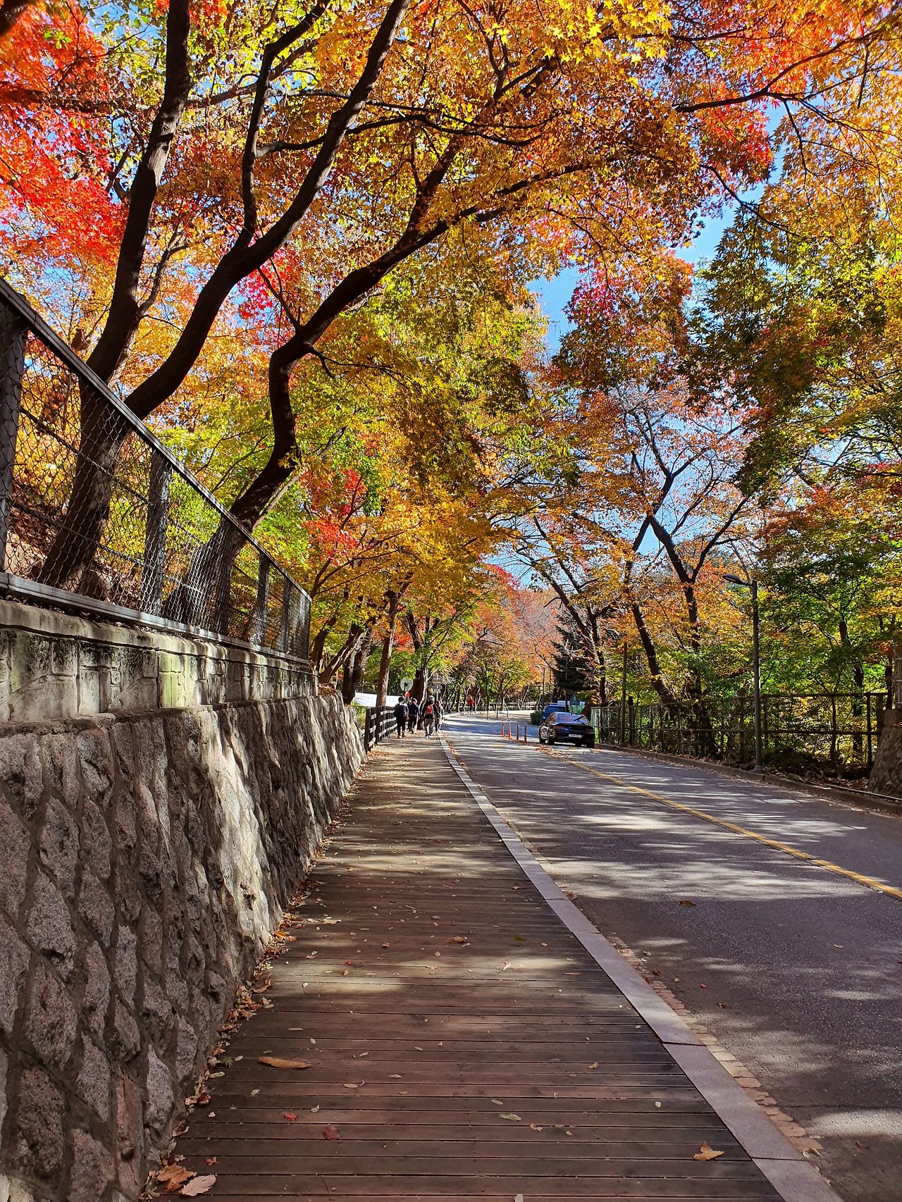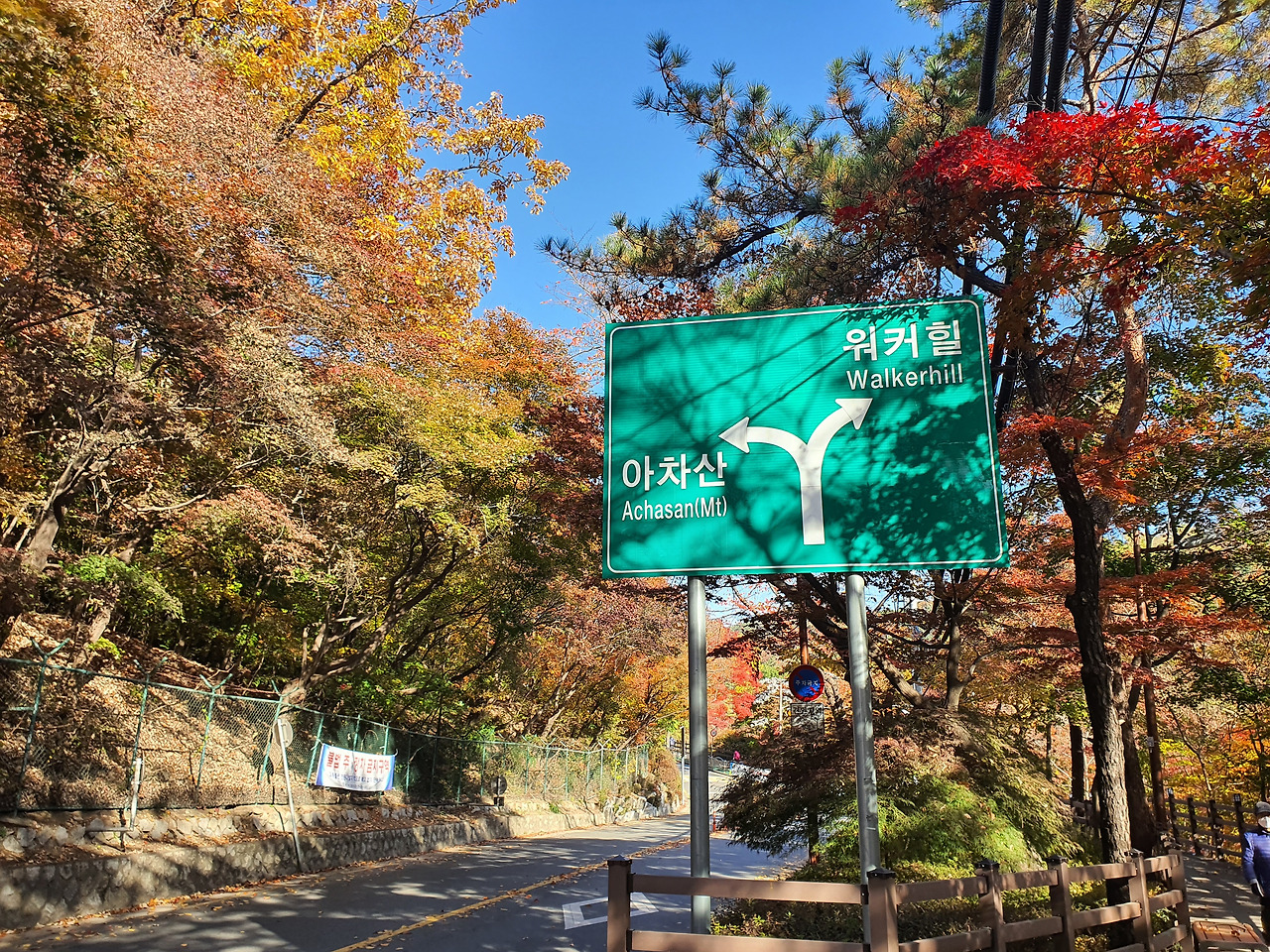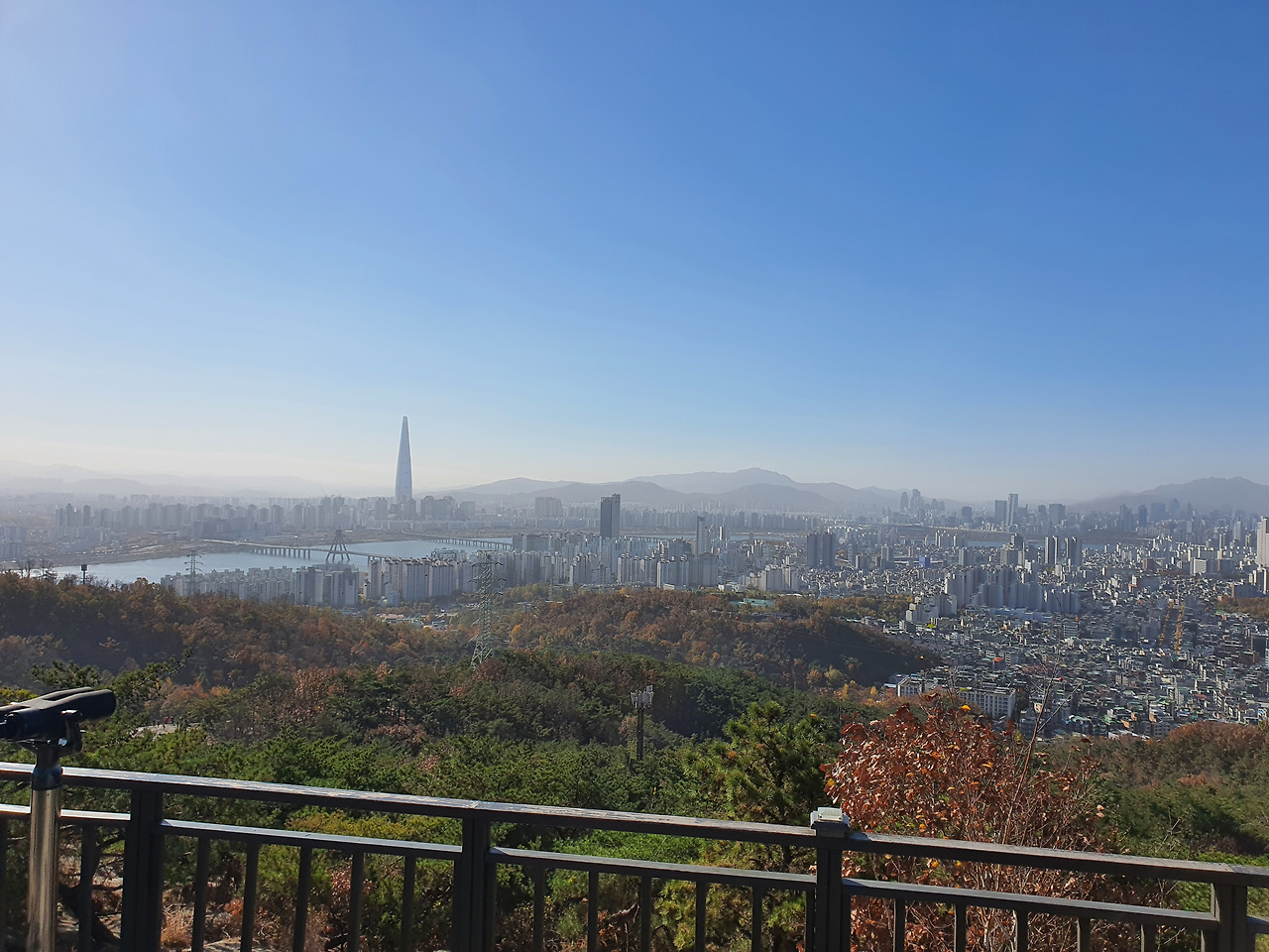 오늘 친구의 제안으로 3주 전부터 가기로 약속했던 아차산 가을 트래킹을 다녀왔다. 빨강, 노랑으로 물든 아차산의 낙엽이 정말 예뻤고, 산 중턱에서 바라보는(그렇다. 아차산 정산까지 오르지는 않았다.) 탁 트인 도심과 한강의 경치가 아름다웠다. 낙엽이 바람에 우수수 떨어지는 운치 있는 순간도 좋았고, 낙엽을 밟는 느낌과 소리도 좋았다.