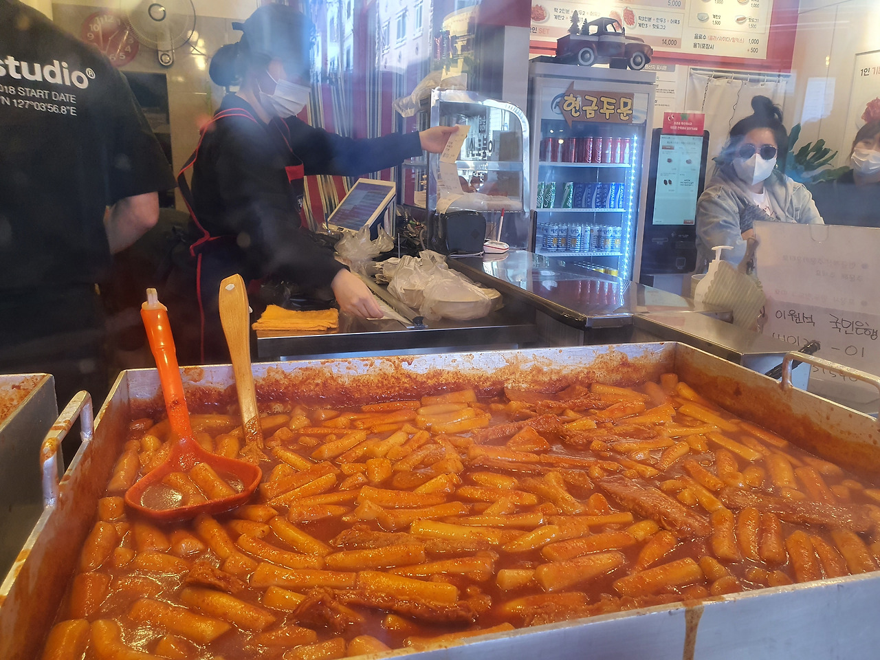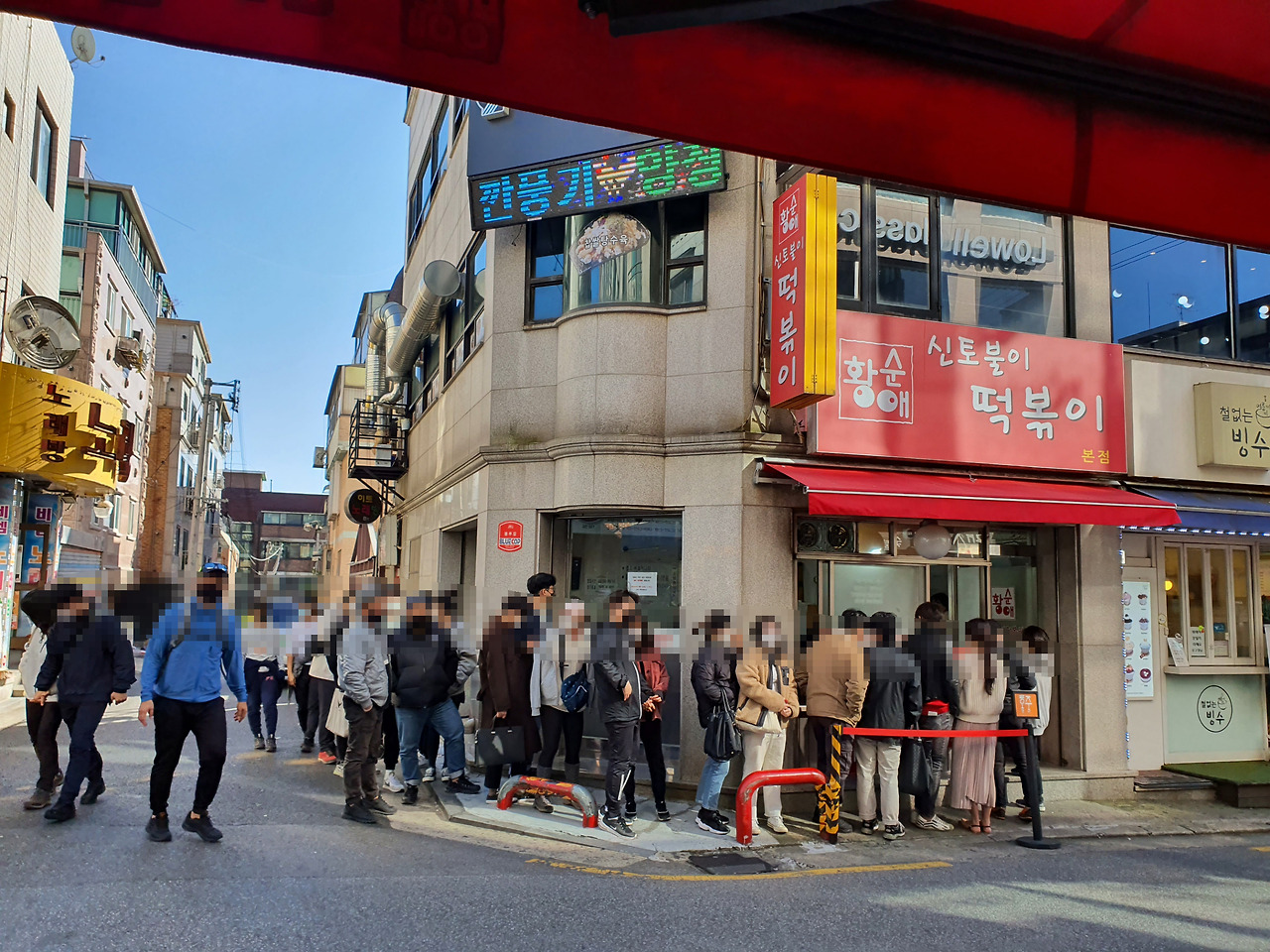 점심으로 광나루역 근처에서 편백나무찜을 먹은 후, 디저트로 서울 5대 떡볶이라는 아차산역 떡볶이를 먹으러 갔다. 친구가 걸으며 길가에 사람이 너무 없어서 낯설다는 이야기를 했었는데, 길가에서 사라진 사람들이 모두 떡볶이집 앞에 몰려 있을 줄이야! 웨이팅이 너무 길어 매장에서 먹는 것은 포기하고 포장을 해서 바로 근처 어린이대공원에 갔다. 샛노란 낙엽이 예쁘게 떨어진 대공원의 평상에서 먹는 떡볶이는 꽤 맵고 달았으나, 묘하게 중독성 있는 맛이었고 왜 인기 있는지 알 것 같았다.