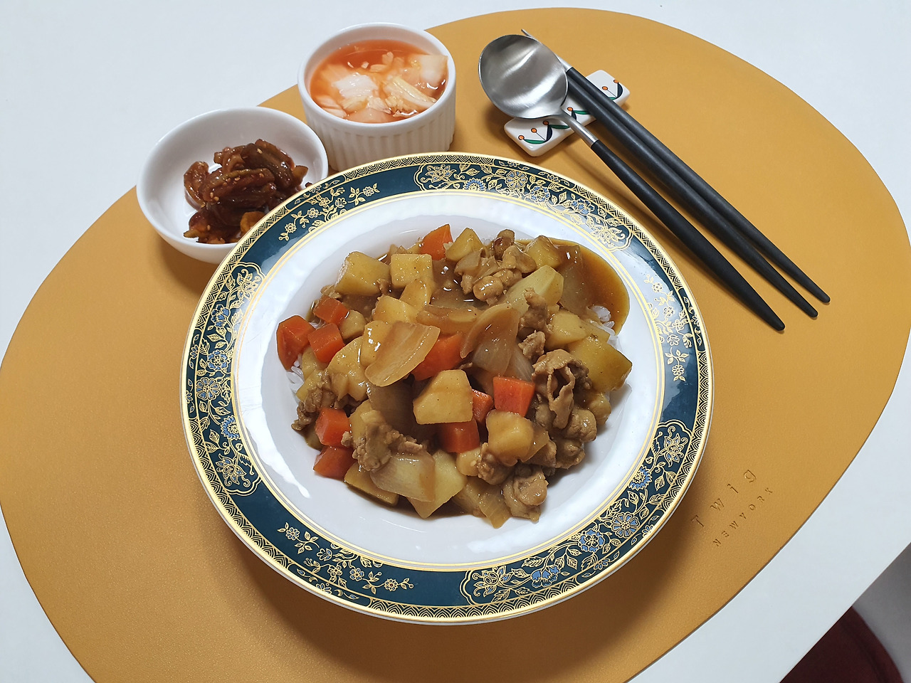 나는 미리 받은 '결혼 선물'에 '혼자' 차도 마시고, 이렇게 예쁘게 음식도 담아 먹는다.