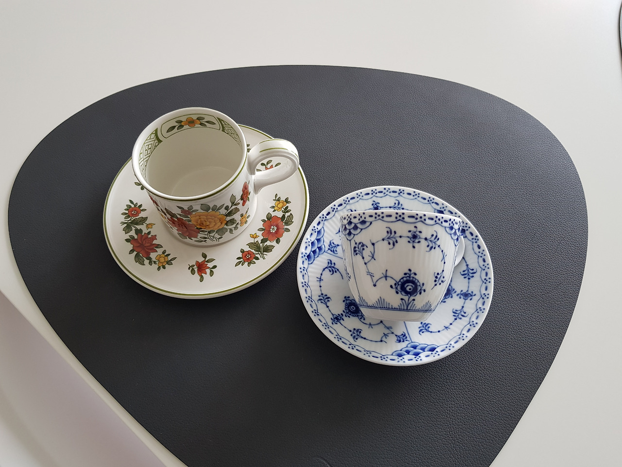 그렇게 나에게 온 그릇들이 바로 이 로열 덜튼 칼라일 세트다(Royal Doulton Carlyle H.5018, 생산연도 : 1972-2001). 찻잔, 스프볼, 샐러드 플레이트, 디너 플레이트로 등으로 구성되어 있다. 생산연도에 따르면 이 그릇들의 나이는 최소 19세~최대 48세이다.