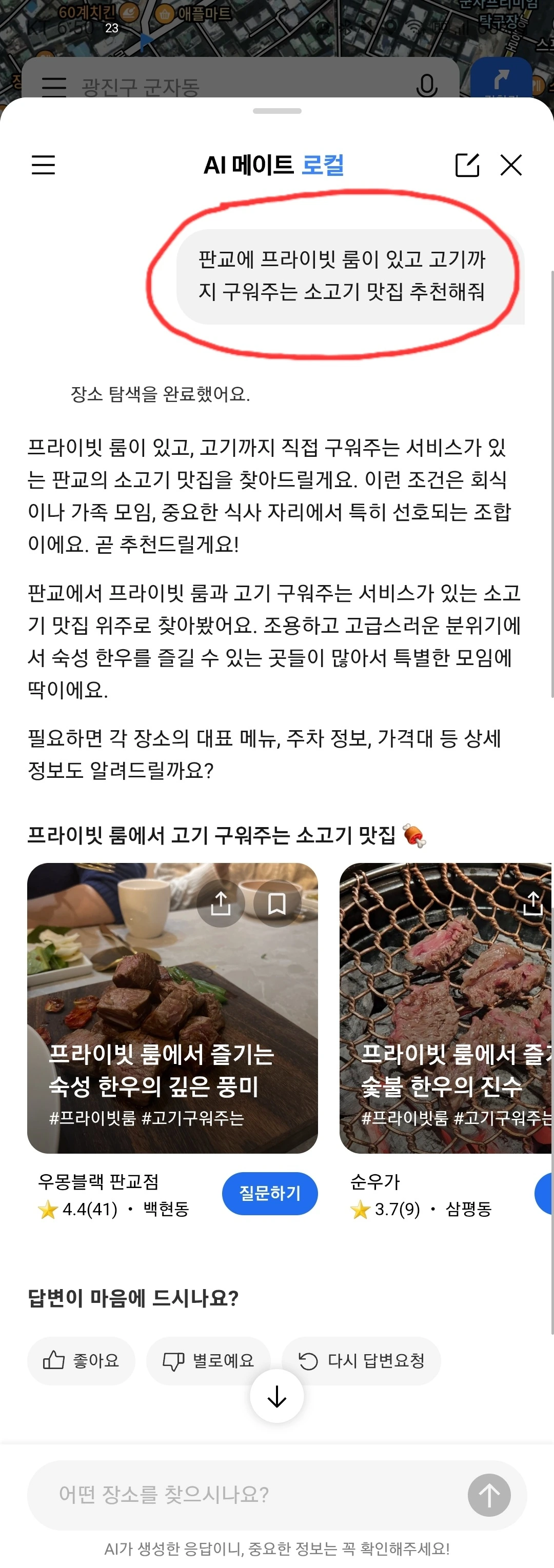 카카오맵의 'AI 메이트 로컬'의 장점은 한 문장으로 설명 가능하다.