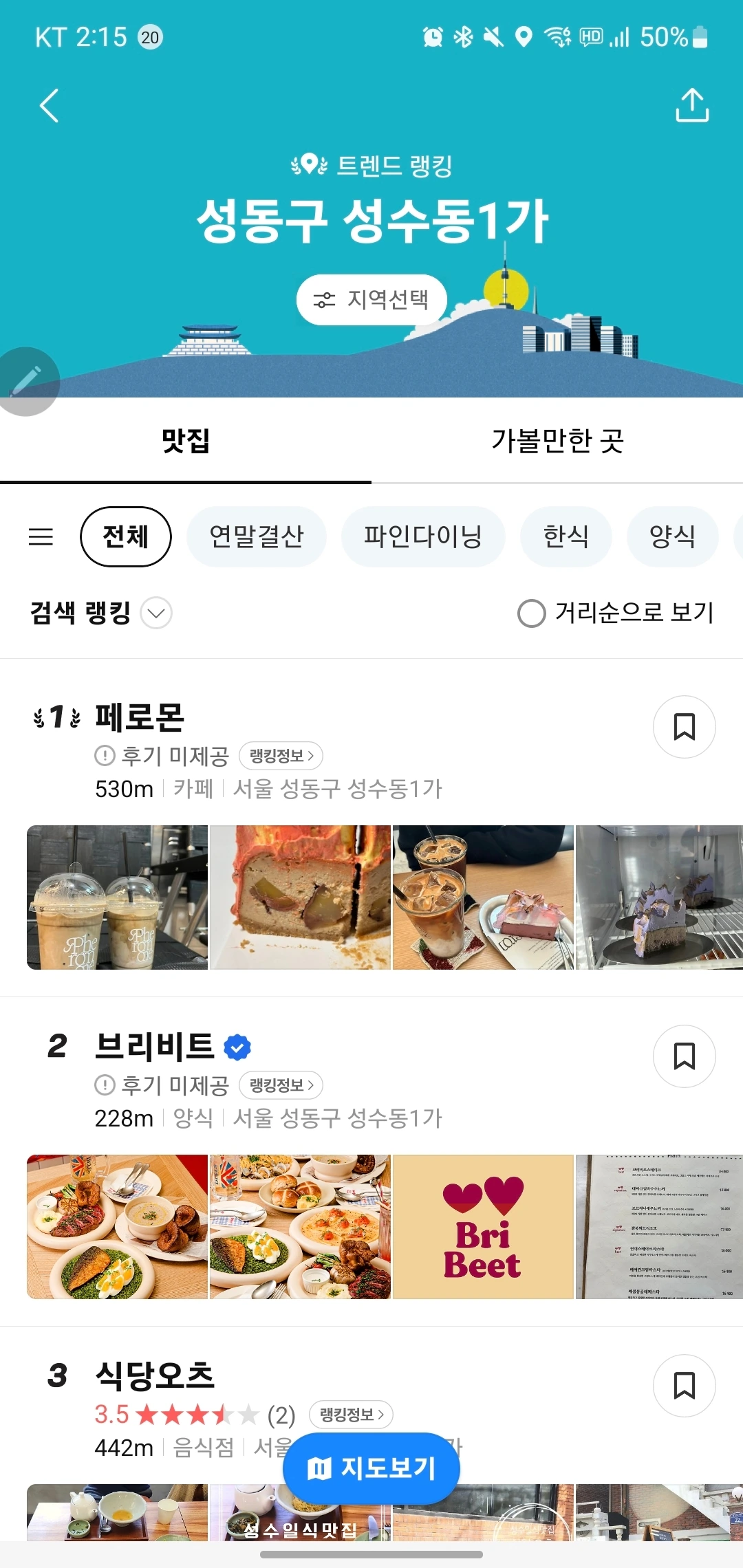 gpt가 지도까지 보여주며 성수동의 식당 3곳을 추천해줬다. 추천해준 식당 3곳이 정말 내가 찾고자 하는 곳인지 네이버 지도에서 해당 식당들을 자세히 살펴보았는데 정말 내가 상상한 식당과 유사했다. 국내 지도 서비스 1위인 네이버 지도는 어쩌면 카카오맵, 티맵을 견제할 것이 아니라 chat GPT를 견제해야 할지도 모르겠다. 다음에는 다른 대화형 검색 서비스의 장소 검색 성능을 알아보려고 한다. 퍼플렉시티, 클로드, 제미나이는 우리나라의 핫플을 잘 알고 있을까? 다음에 찾아보는 걸로.