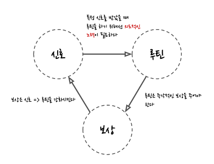우리는 루틴을 지속적으로 하면서 습관으로 만들 수 있다. 습관 형성과 관련된 책들을 읽으면 공통적으로 말하는 습관 고리가 있는데 바로 신호 ⇒ 루틴 ⇒ 보상이다.