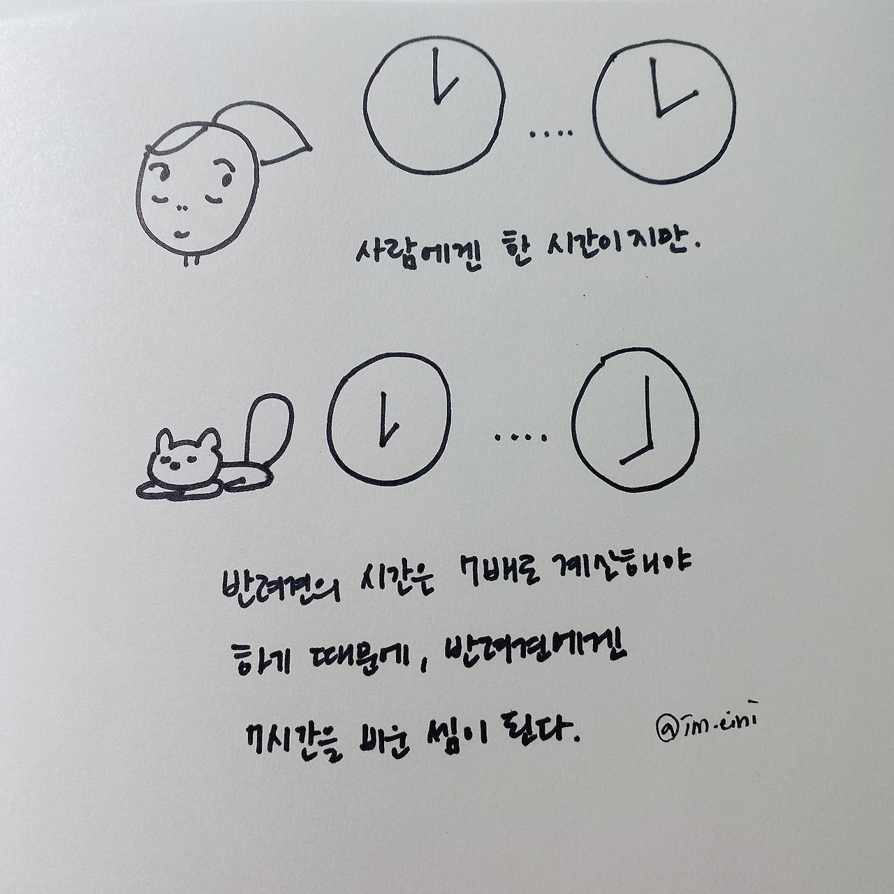 사람의 1년이 반려견에게 7년이라고 계산하는데, 그렇다면 사람이 1시간 동안 집을 비울 경우 1 시간은 7시간이라 보면 되는 것이다. 보통 누군가를 만나 식사를 하면 최소 2시간가량이 소요되는데, 반려견의 시간으로 환산하면 14시간이 된다고 계산이 나오니 참으로 미안해질 수밖에 없다. 직장에 가야 하는 경우에야 어쩔 수 없지만, 나의 즐거움을 위한 것이라면 더 미안해질 수밖에 없다.
