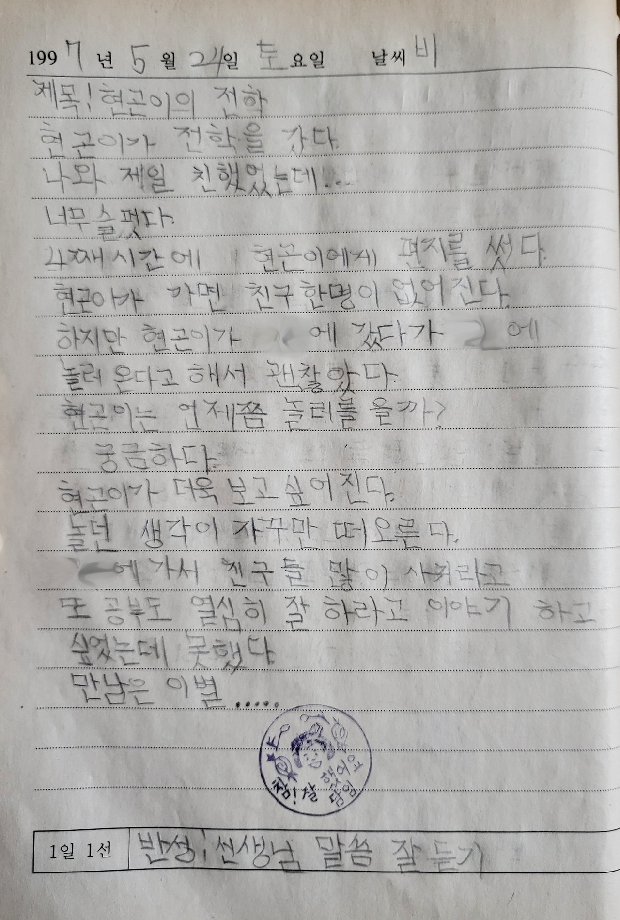 현곤이 전학 수속도 안 끝났을 것 같은데 그리워하다 못해 앓고 있는 게 참 작음이 답다. 만남은 이별이라니 참으로 현실적이고 아픈 말이다. 문득 나에게 '가장 슬펐던 이별'은 뭐였을까 생각해봤는데 모든 이별은 슬펐고, 그 순간에는 마냥 무너졌기 때문에 '가장 기억에 남는 이별'로 수식어를 바꿔보았다. 생각해 보면 참 많은 이별을 겪었는데 오늘은 이 기억을 꺼내고 싶다.