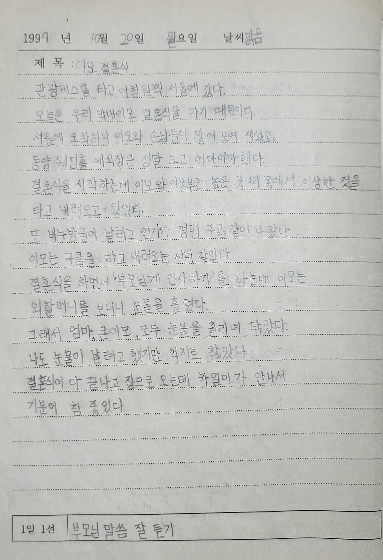 높은 곳 벽 쪽에서 이상한 것을 타고 내려오는 행위는 당시 웨딩의 셀링 포인트였던 것 같다. 나 역시 하늘에서 내려오는 이모를 보며 놀라워 한 경험이 있다. 오늘도 역시나 글로 현장감을 표현해 준 작음이*에게 엄지 척을 날림과 동시에 눈물이 나려고 했는데 억지로 참은 건지, 다 울어서 나도 울어야 할 것 같았는데 눈물이 나지 않아 괜히 눈을 연거푸 꽉 감아본 것인지 묻고 싶다.