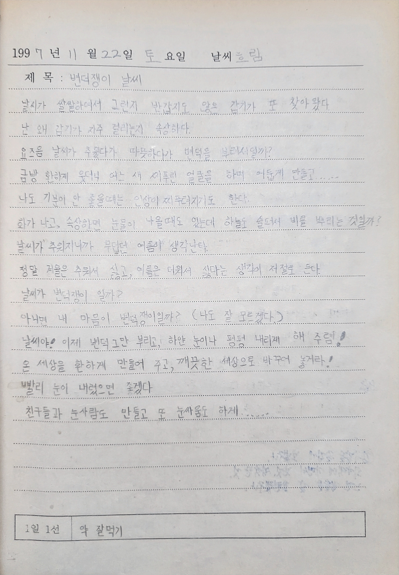 다듀와 윤미래 노래를 듣는데 그들의 노래를 처음 접했던 시기와 현재가 대비되면서 세월이 참 많이 흘렀구나 싶다가 그만큼 나도 늙은 것 같다는 생각에 눈물이 났다고 했다.