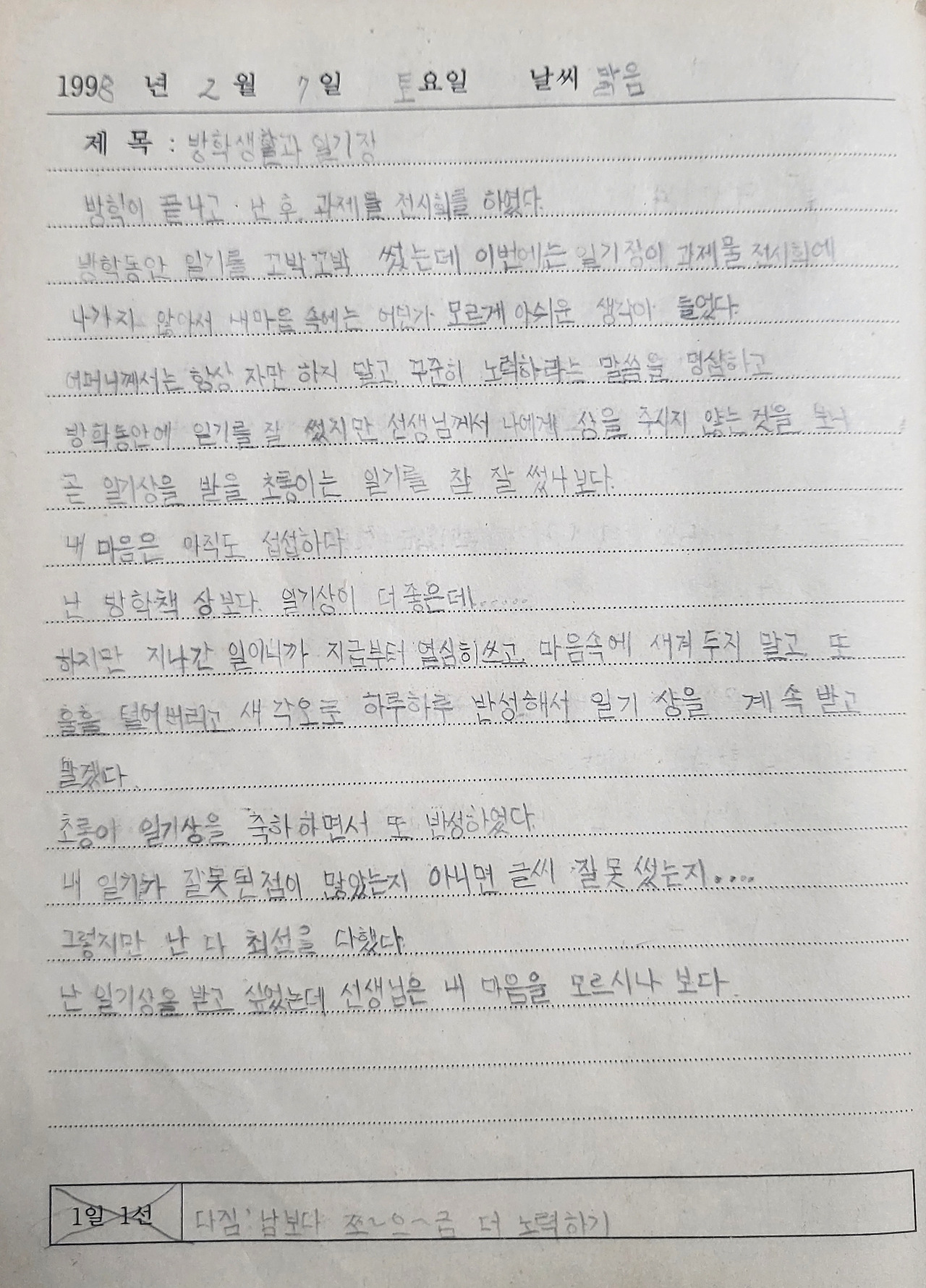 열심히 노력했지만 일기상을 받지 못해서 아쉬워 죽겠는 아홉 살 짜리도 앞으로 남보다 쪼~으~끔 더 노력해야겠다고 마음먹는 게 현실인데, 서로 다른 두 사람이 만나서 함께 사는 데에는 상상 이상의 노력과 존중, 배려가 필요할 것이라는 생각이 든다.