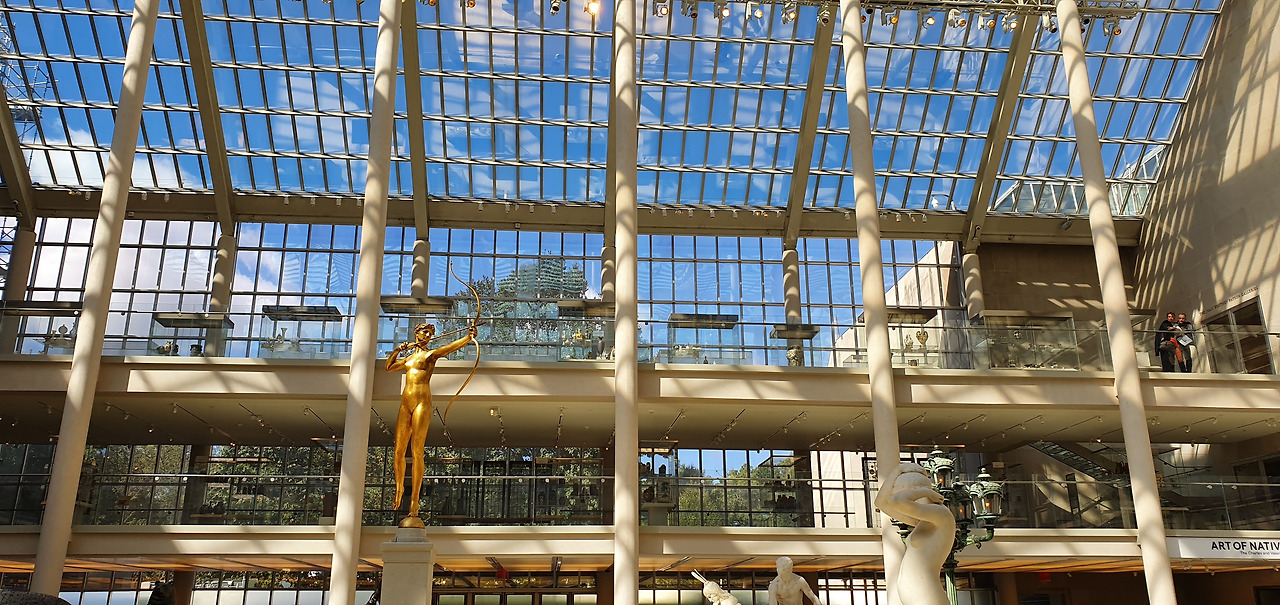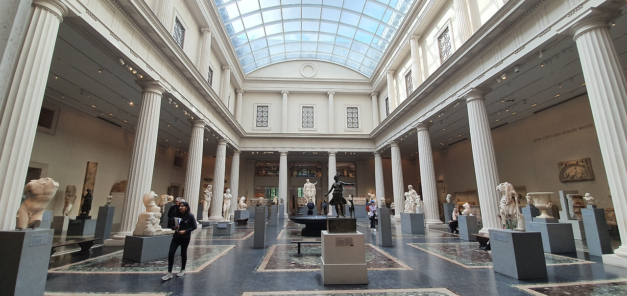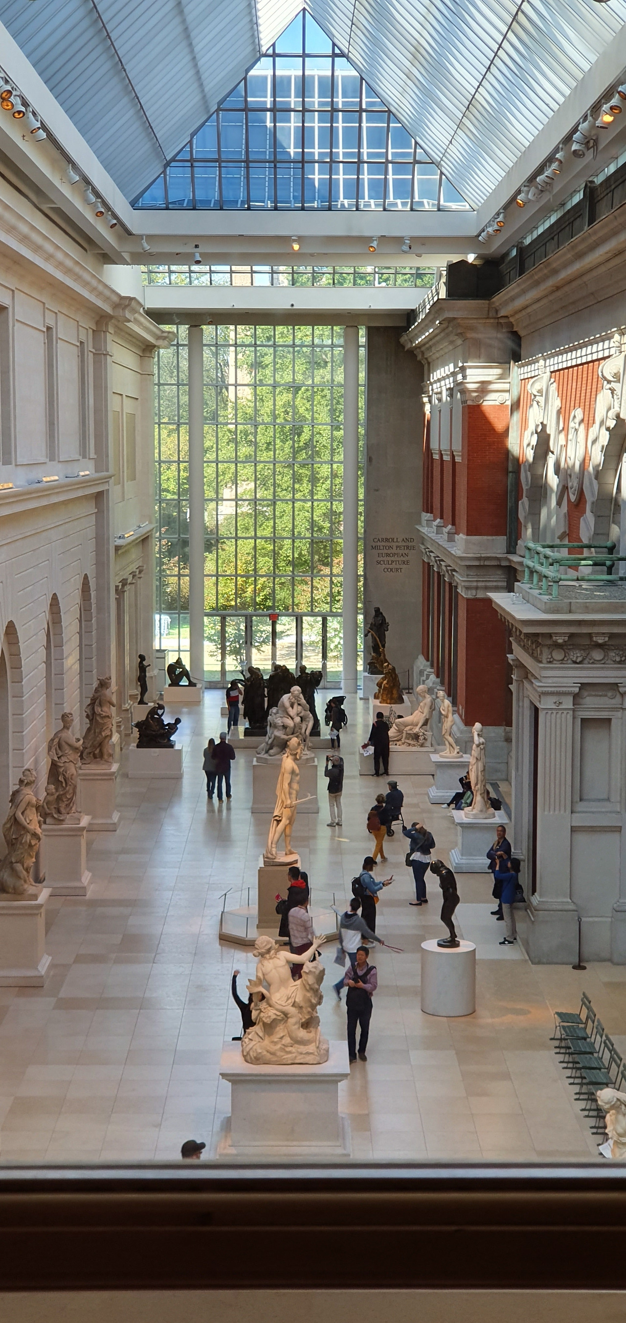 나는 The Met을 여행의 후반부, 뉴욕을 떠나기 전 날에 방문했다. 스타벅스에서 내 사랑 차이티라테를 손에 들고 아직 아침이라 한산한 센트럴파크를 지나 The Met로 향한다. 웅장한 외관을 지나 내부로 들어가니 ‘와우!’ 거대한 규모가 입을 떡 벌어지게 한다. 규모도 규모이거니와 높은 천고에, 천장과 한쪽 벽이 유리창문으로 되어있어서 이렇게 날이 좋은 날에는 채광이 엄청났다. 거대하면서도 우아한 기품이 느껴지는 곳이었다. 미술작품에 대한 지식은 거의 없다고 봐야 하는 나이기에 미술관에 대한 첫인상은 작품보다도 그 건물이 주는 느낌이다. 특히나 자취를 시작한 이후로 건물에 채광이 얼마나 중요한지 깨달은 나는 유리창문으로 따뜻한 햇살이 들어오는 이곳이 너무 마음에 들었다. (미술관 이야기에 채광을 이야기하는 나라니….)