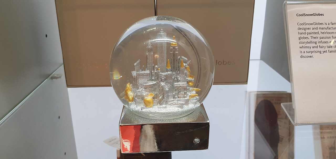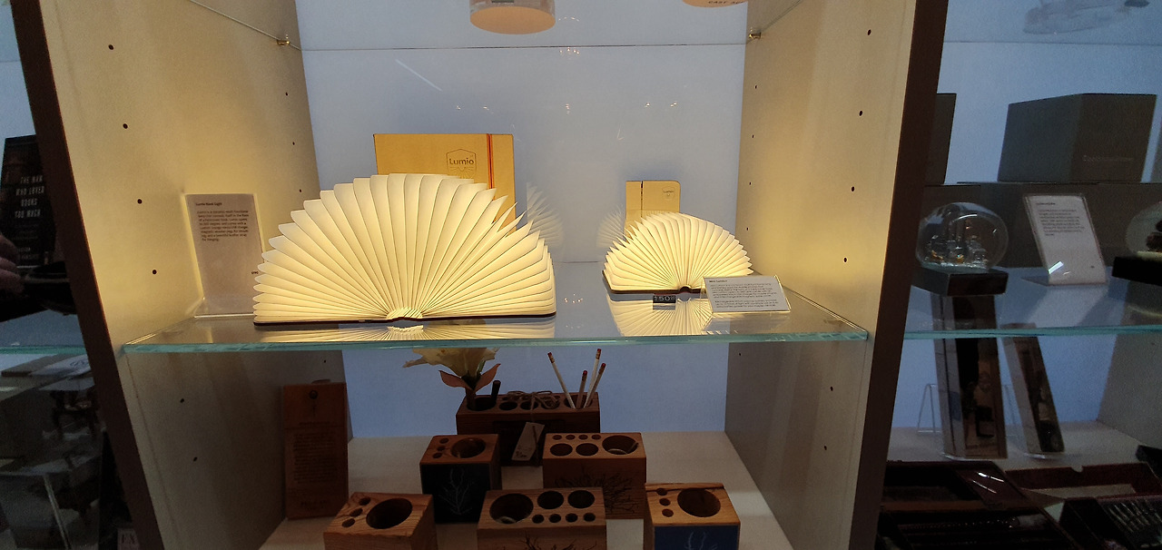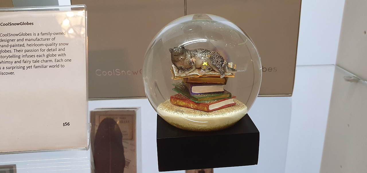 로즈홀을 나와 다시 1층으로 발걸음을 옮겼다. 내려가기 전에 복도를 지나치는데 만화책 관련 작은 전시 같은 것이 꾸며져 있어 내 시선을 잡았다. 시간이 별로 없었기에 자세히는 보지 못했지만 잠깐 읽어본 세 컷 만화는 나에게 작은 미소를 안겨주었다. 그리고는 도서관 밖을 나가기 전 1층 한편에 마련된 기념품 코너를 찾았다. 여기에서는 피터팬과 미녀와 야수 등 우리가 잘 아는 동화책들 뿐만 아니라 아기자기한 기념품들이 즐비했다. 그중에 가장 눈에 들어왔던 두 가지는 무드등과 스노볼이었다. 귀여운 고양이가 책 위에 누워있는 스노볼과, 책이 펼쳐진 느낌의 무드등이었는데 아쉽지만 한국에 가져가기에는 여러 가지로 어려운 물건들이었기에 눈과 사진으로만 간직하고 도서관을 나섰다.