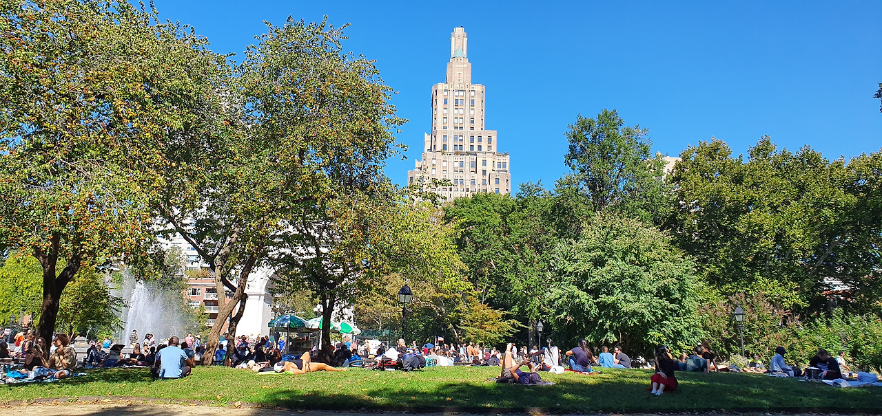 원래 '워싱턴스퀘어파크를 꼭 가야지' 하고 간 것은 아니었다. 브런치를 먹고 그리니치 빌리지로 향하다 보니 자연스럽게 지나치게 된 곳이 바로 워싱턴스퀘어파크였기 때문이다. 우리는 잠시 이곳에서 시간을 보내기로 결정했다. 공원들은 왜 아무것도 하지 않고 앉아만 있어도 이렇게 평화로운 순간을 선물하는 것일까. 워싱턴스퀘어파크도 마찬가지였다.