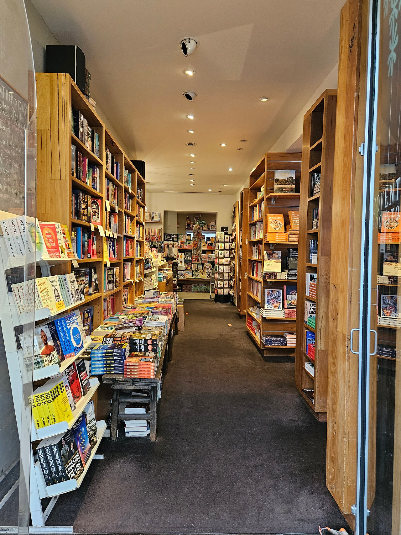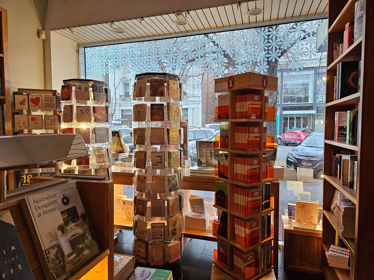 둘째 날 가장 먼저 찾아간 곳은 사우스멜버른마켓 근처에 있는 서점인 Coventry Bookstore였다. 카페에서 여유롭게 차 한잔을 한 후 3-4분만 걸어가면 나오는 Coventry Bookstore. 이곳 역시 목재책장이 많은 책들을 담고 있었고 중간중간 귀여운 엽서나 굿즈들이 디스플레이되어 있었다. 평일 오전이라 그럴까 아니면 비가 왔다 갔다 하는 겨울의 흐린 날씨라서 그럴까, 아늑한 서점 내부에는 아직 손님이 많지는 않았다. 어제 갔던 서점들과 자리한 동네가 달라서 그런지 이곳의 경우 좀 더 아늑하고 여유로운 느낌이다.