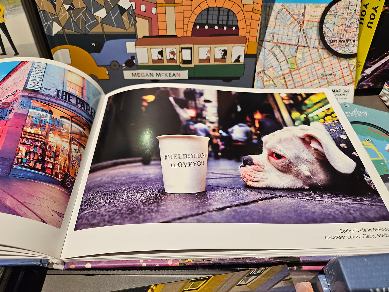 입구 가까운 쪽에는 작지만 눈에 띄는 '멜버른' 테마의 섹션이 자리하고 있었다. 지도책부터 동화책과 사진집까지. 눈에 띄는 멜버른 사진집을 열어보니 귀여운 강아지의 옆모습이 나를 반긴다. 한 장 한 장 멜버른의 순간들을 담은 멋진 사진들을 보니 '역시 사진집은 아무나 내는 것이 아니구나'라는 생각이 들면서, 잠시 내 핸드폰의 사진들이 조금 안타까워졌다. 사진을 잘 찍지 못하는 주인을 만나 고생하는 핸드폰, 미안.