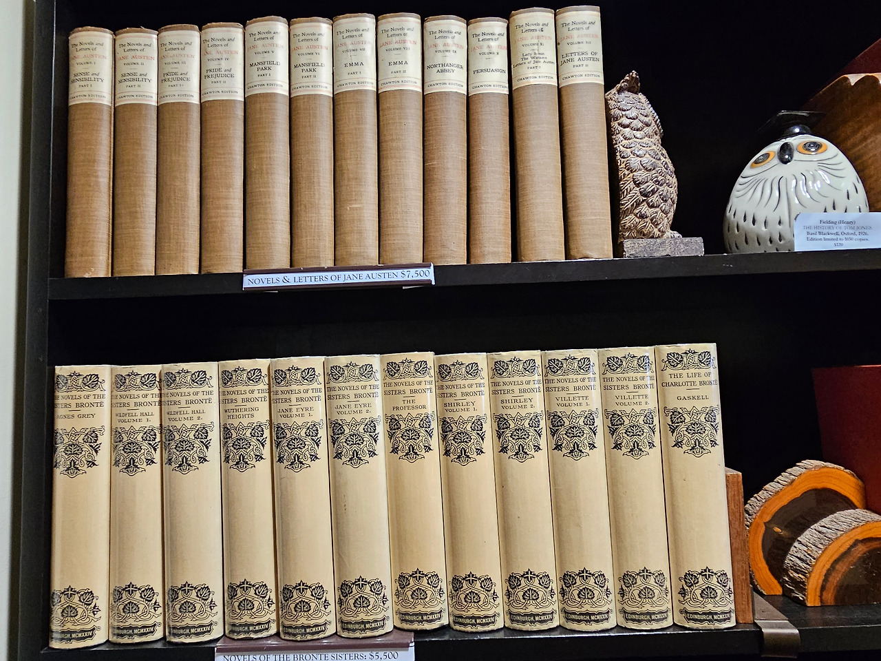 서점 이름과 입구에 나와있는 Licenced Second Hand Dealer라는 간단한 소개에서도 알 수 있듯이 이곳은 중고서적들을 취급하는 서점으로 보였다. 하지만 단순히 '중고'라고 하기에는 엄청난 가치를 지니는 앤틱 서적들을 보유하고 있는 곳이었다. 우선 인테리어 자체도 고풍스러웠는데 서점 곳곳에 부엉이 장식이 눈에 띄는 것이, 운영하시는 분이 부엉이를 사랑하시는 건가 하는 생각이 들 정도였다. 반겨주는 부엉이와 인사를 하고 계단을 따라 내려가면 짙은 와인색 카펫 위로 넓게 펼쳐진 서점 공간이 나온다.