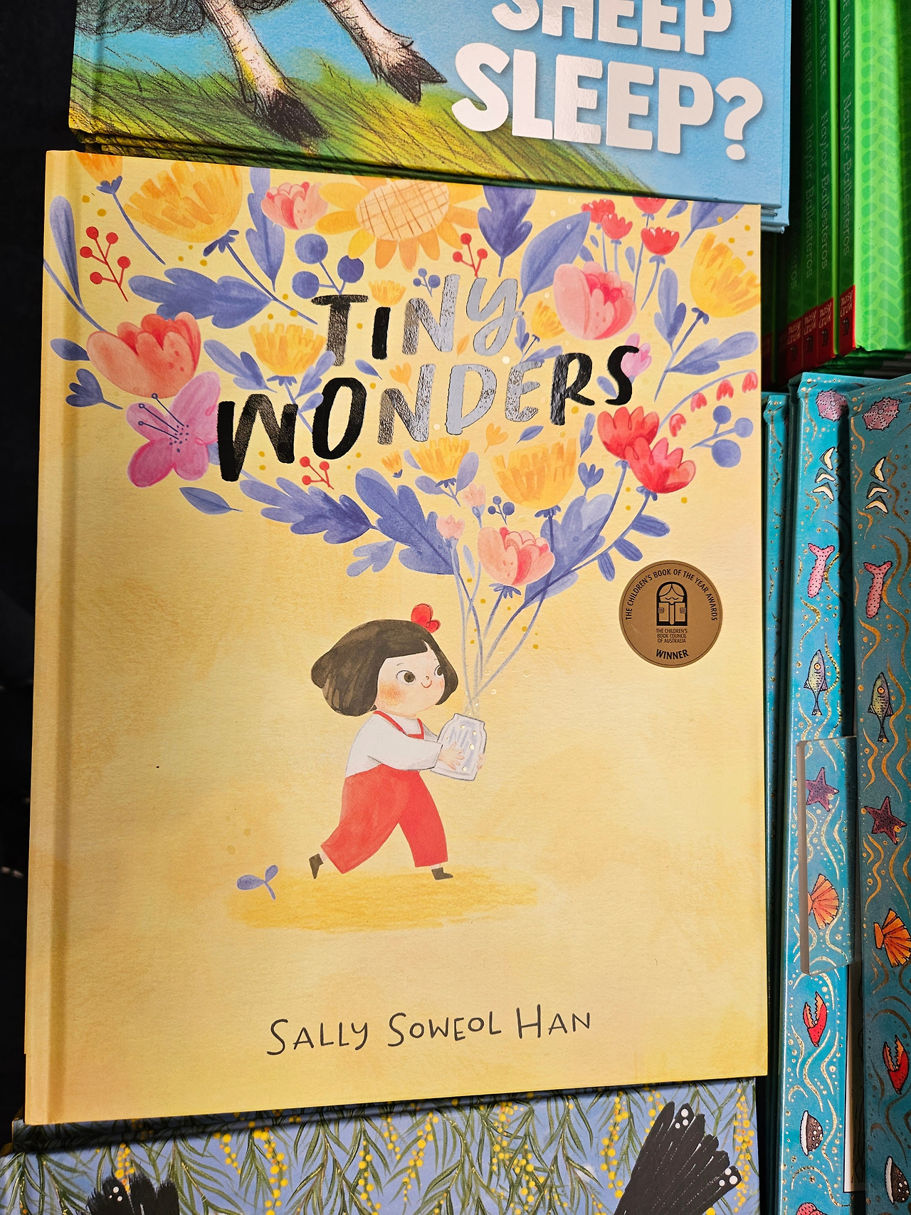 서점에 다다르니 아이보리 색을 바탕으로 예쁜 파란색의 책장들이 나를 반겼다. 서점을 천천히 둘러보다가 역시나 나는 가장 안 쪽에 자리 잡고 있는 어린이서적 섹션으로 자연스럽게 빨려 들어갔다. 많은 동화책들 중 나의 눈을 사로잡았던 것은 한국 작가 분의 동화책이었다. Tiny Wonders라는 책으로 귀여운 꼬마아이의 무언가 설레어하는 모습이 표지를 장식하고 있었다.
