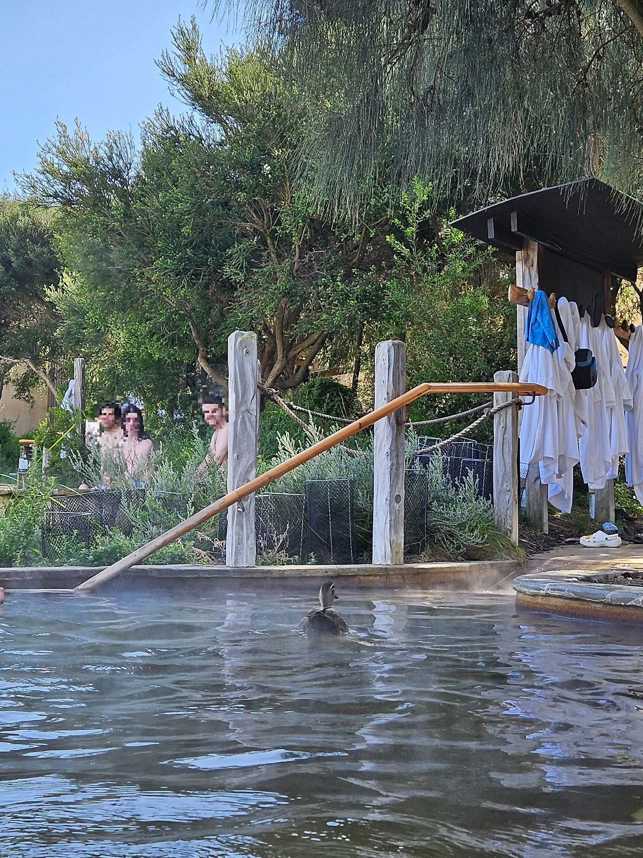 친절한 분들 덕분에 사진도 찍고 다른 온천탕으로 가야 할지 고민하던 그때, 온천을 즐기던 사람들 사이로 새 한 마리가 빠르게 날아오더니 온천물에 안착했고, 놀란 사람들의 유쾌한 미소를 아는지 모르는지 천천히 그리고 유유히 온천탕을 빠져나갔다. 이곳에서는 이렇게 새들과 함께 온천을 즐기는 것이 아무렇지 않은 것 같았다. 사람들은 새가 빠져나가자 다시 아무 일도 없었다는 듯이 함께 온 일행들과 담소를 나누기 시작했다.
