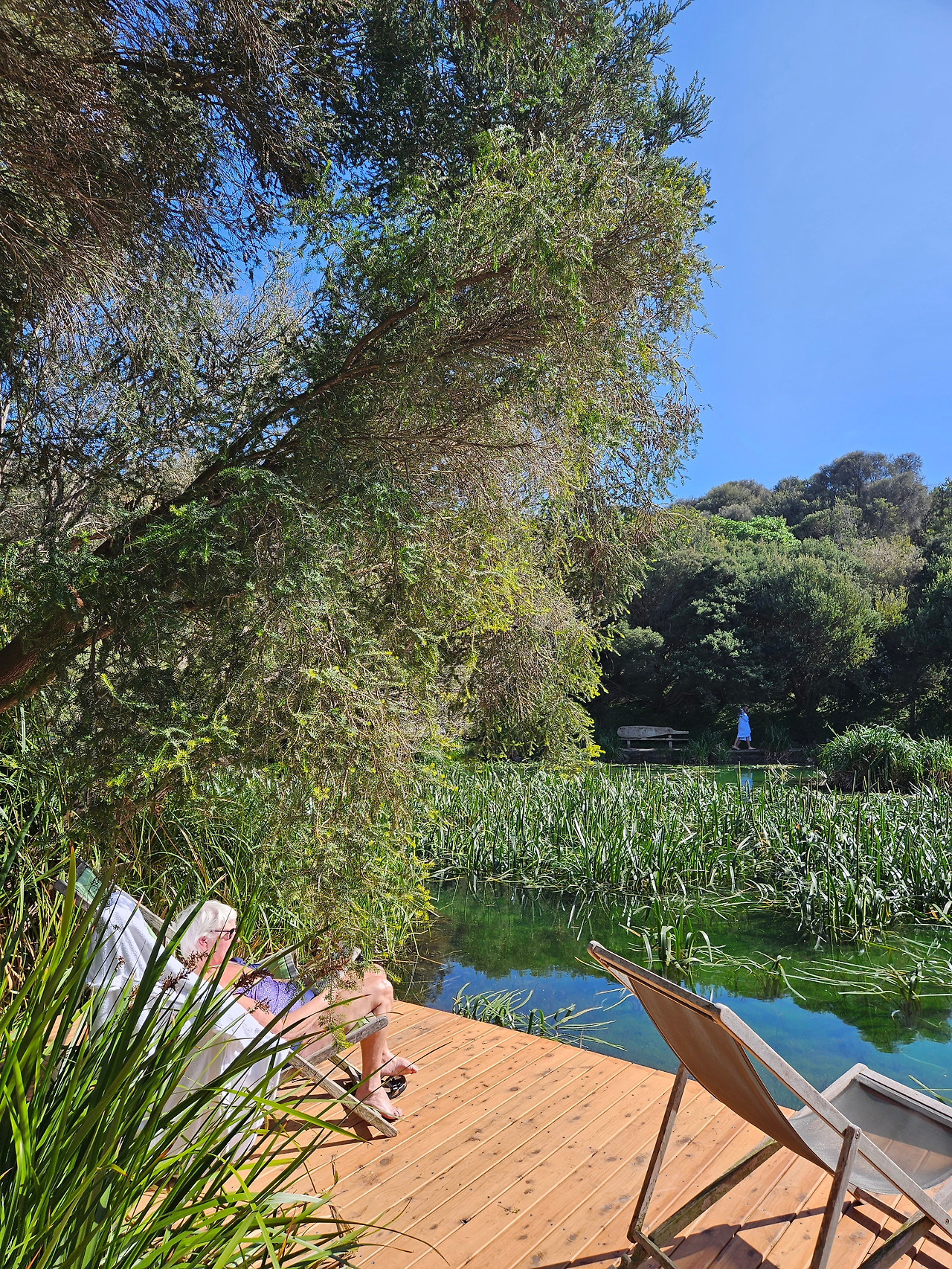 페닌슐라 온천에는 중간중간 나무들 사이로 편하게 앉아있을 수 있는 벤치와 의자들도 잘 구비되어 있었다. 따뜻한 햇살과 푸른 나무 아래에서 의자에 앉아 독서를 하고 계신 흰머리의 할머니를 보자니 가보지는 않았지만 프랑스 니스 같은 곳에 와 있는 것 같은 느낌이었다. 나도 나이가 들면 이렇게 여유롭게 여가를 즐기고 싶은데 그러려면 지금... 열심히 일해서 돈을 모아야겠지?