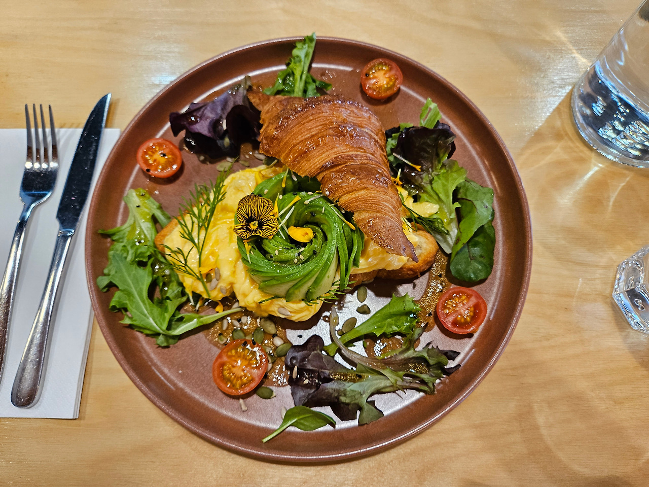 메뉴를 기다리며 앉아있자니 한 명 두 명 손님들이 들어와 자리를 잡기 시작했다. 그 사이 내가 주문한 메뉴도 도착. 무엇을 먹을까 메뉴판을 살펴보다 아침이라서 그런지 눈에 들어온 모닝글로리라는 메뉴를 시켰다. 그리고 눈앞에 도착한 나의 소중한 식사. 와우! 바삭한 색감의 크루아상 위를 노란 계란 이불이 덮고 있고, 그 위로 아보카도의 꽃이 피었다. 어떻게 보면 일반적인 브런치 메뉴에 이 카페의 테마인 아보카도를 얹은, 크게 특별한 것이 없는 메뉴가 아니냐 할 수 있겠지만 한 입 먹어보니 눈이 확 떠졌다. 정말 이름 그대로 아침의 영광! 조식이나 브런치로 먹기에 너무나 완벽한 한 끼 식사였다. '아, 내가 사는 곳에도 이런 카페가 있었으면 좋겠다'는 생각이 저절로 들면서 동시에 '한국에 프랜차이즈 내면 잘 되지 않을까' 하는 생각까지. 요새는 어디를 가서 좋으면 좋다는 생각에 그치지 않고 '이걸 한국에 차리고 싶다'거나 '이렇게 운영을 하려면 인력은 얼마나 필요하고, 인건비는 어떻고...' 등등의 생각까지 하게 된다. INFJ였던 나의 MBTI가 ISTJ로 바뀌었는데, 사람은 안 변한다고 하지만 그래도 어떤 부분은 바뀌기도 하나보다.