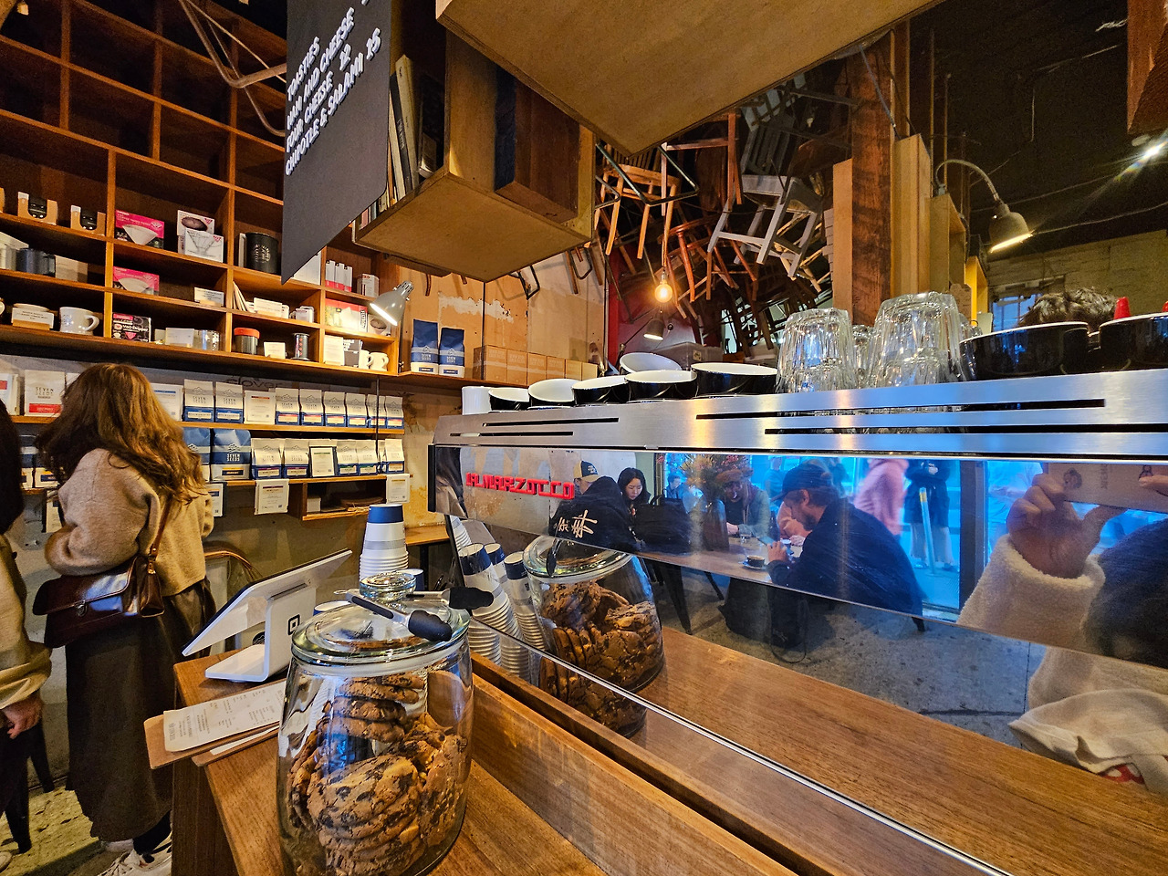 아보카도 모멘트에서 즐거운 식사를 마친 후 서점으로 가기 전에 잠시 카페에 들러 한숨 돌릴까 하는 생각이 들었다. Dukes와 LUNE 카페는 가 보았으니 오늘은 또 다른 유명 카페인 브라더 바바 부단 카페로 향했다. 브라더 바바 부단 카페는 계획을 해서 간 것이 아니었기 때문에 미리 카페를 찾아보지 않아서 이렇게 작은 사이즈의 카페인지를 도착해서 알게 되었다. 게다가 입구 앞에는 사람들이 붐비고 티가 나게 간판이 올라가 있지 않아서 한 번 살짝 지나쳤다가 지도를 보고 다시 찾아갔더랬다. 내부에 들어가니 앉을 수 있는 자리는 몇 자리 없고 대부분 테이크아웃을 해서 가거나 카페 입구 근처에서 마시는 분위기였다.