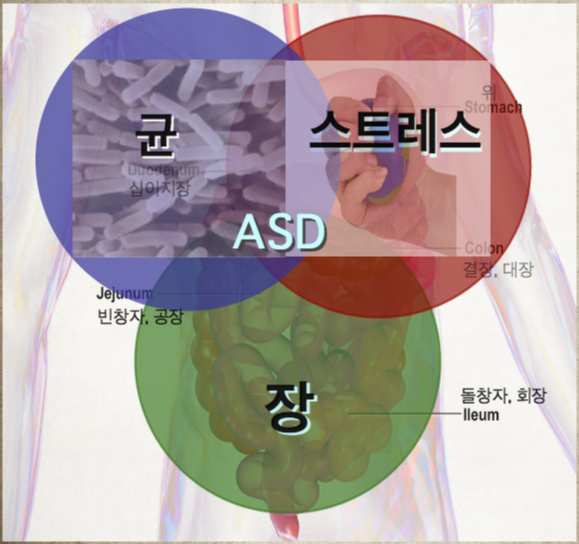 한 연구에 따르면, 신생아가 산도를 지나면서 흡입하게 되는 질내 분비물이 아기의 생후 위장내 미생물군체를 이루는 기초가 되는 것으로 드러났다. 임신 중 산모에게 가해지는 스트레스는 이 질내 미생물군체를 변화시키며 특히, 락토바실리우스(Lactobacillus, 유산균류)의 총수와 전체 미생물군 중 유산균류의 비율을 낮게 만드는 것이 발견되었다. 따라서 스트레스를 받은 산모가 낳은 아기는 그렇지 않은 산모의 아기와 다르게 혼합된 미생물군체를 물려받게 된다. 질내 미생물군은 주로 산모의 위장관에서 유래된 것이라고 해도 신생아의 위장내 미생물군은 질내 미생물군에서 유래한 것이 좀 더 분명하다. 또한 위장내 미생물군이 신생아의 신경화학 작용에도 차이를 만드는데 (예를 들면, 두뇌 속의 일부 아미노산 수치가 다른 것 등), 산모의 스트레스에 따라 간접적인 영향을 받은 신생아의 위장내 미생물군이 다르기 때문이라는 것이 발견되었다. 이것은 건강한 장을 유지하는 것으로부터 위장관-두뇌 의사소통에 이르기까지 미생물군체의 중요성이 매우 크다는 것을 보여준다. 신생아의 장내 미생물군에 기여하는 요소는 질내 분비물과 함께 초유(colostrum)도 있다. 장, 균, 스트레스 (Guts, Germs, and Stress) 이론은 주장(tenets) 증명, 기작(mechanisms) 결정, 잠재적 효과(implications) 검토 등이 필요하지만 매우 흥미로운 현상임에 틀림없다.