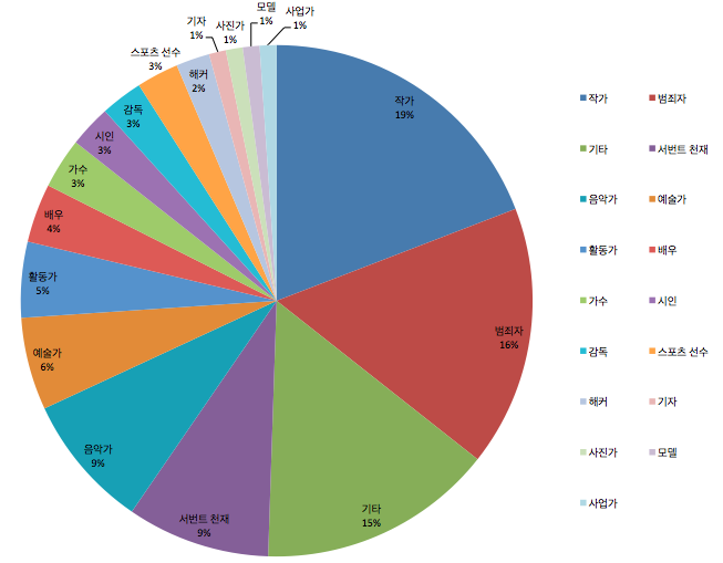 자폐증을 가진 사람 중에 유명한 사람들도 꽤 있다. 자폐증 진단이 급속하게 늘어나고 있는 가운데 자폐증을 가진 유명 인사들이 더 많아질 것으로 생각한다. 흥미로운 사실은 현재까지 파악된 132명의 자폐증을 가진 유명인 중 19%가 작가라는 점과 예술 및 음악 분야에서 두각을 나타내고 있다는 것이다. 유명한 해커도 4명 있고 5명의 감독을 비롯하여 비디오 게임 전문가, 연구원과 여러 서번트 천재들이 있다. 하지만 범죄자도 매우 많다. 그중에 몇몇 인사를 소개하자면 다음과 같다.