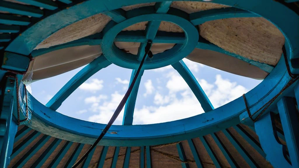게르의 지붕은 한가운데가 뚫려 있어 밤이면 별들이 창연히 빛난다. 비가 오면 줄을 당겨 구멍을 덮는다. 대체로 몸무게가 가벼운 소녀들이 지붕에 올라가 걷어올리기도 한다. 돈뜨고비에서 이른 아침, 게르 지붕에 올라가 하늘을 열어 주던 몽골 소녀가 생각난다. 짐작하건데 영혼이 가벼운 이들만이 게르에 올라설 듯하다. 게르의 한가운데 뚫린 천창은 하늘의 신령(탱그리)이 드나드는 문으로 여겨 비가 오지 않으면 늘 열어 둔다. 그 천창을 통해 들어오는 햇빛의 위치를 보고 유목민들은 시간을 안다. 일종의 해시계이다. 밤이면 누워서 별자리를 보고 절기를 헤아리는 것도 멋진 일이다.