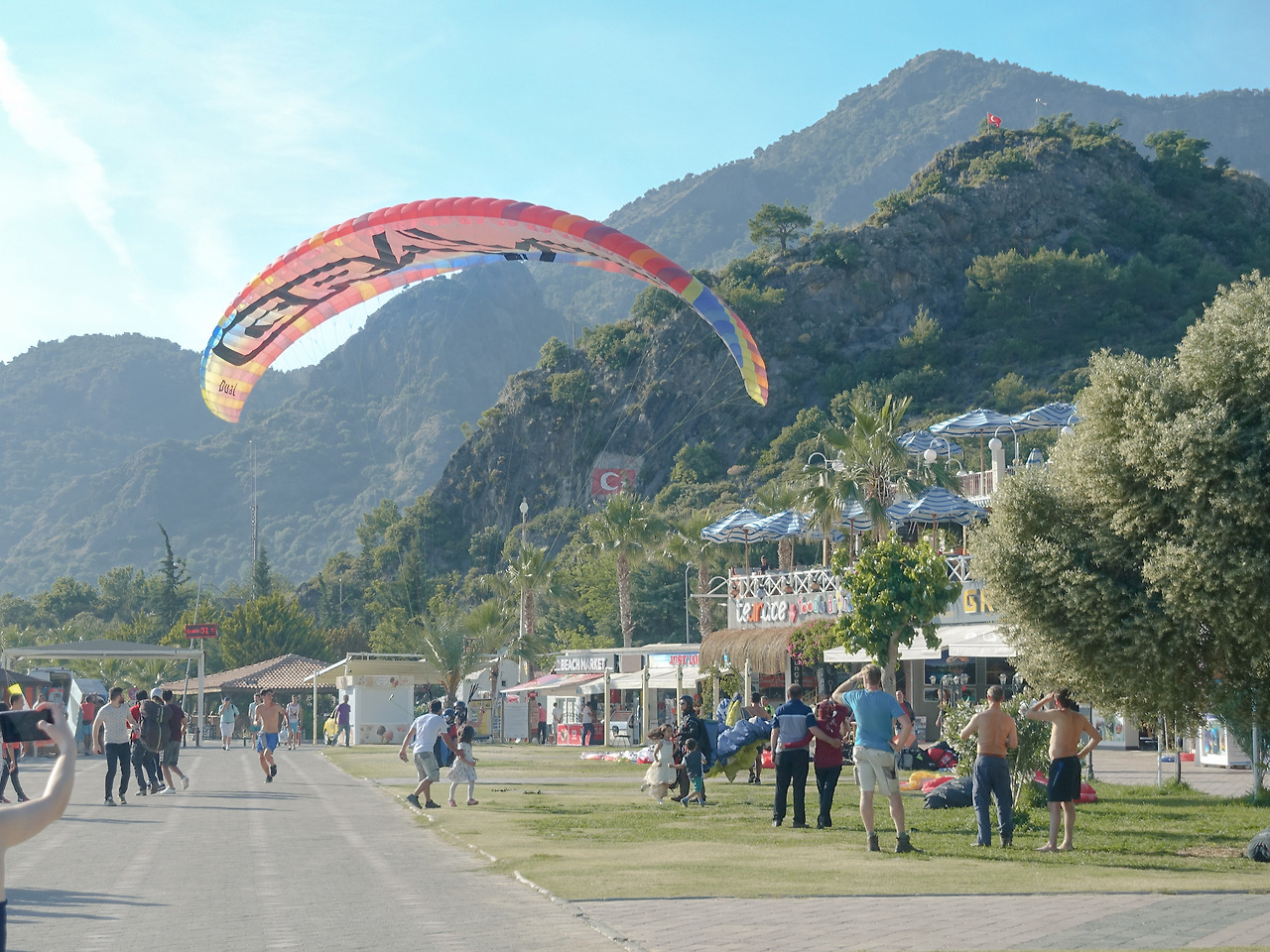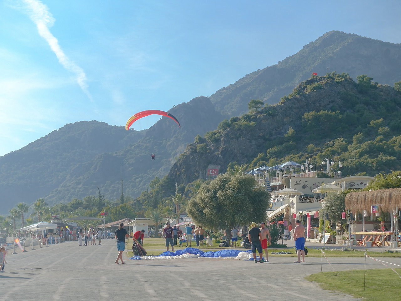 욜루데니즈는 세계 3대 패러글라이딩 명소입니다. 덜컹대는 길을 한참 올라가면 탁트인 해발 2000M 절벽에 내려줄겁니다. 숙소가 아득히 보이고 초승달 모양의 해변이 파란 바다와 함께 보일 겁니다. 여길 뛴다고? 고민하고 있으면 “run!!”하며 뒤에서 소리치는데 안 뛰고 배길 수 없습니다. 지중해를 바라보며 달리다 보면 어느새 발에 닿은 게 없지만 발 밑으로 보이는 초승달 모양의 해변은 왜 이 곳이 세계 3대 패러글라이딩 장소로 꼽히는지 충분히 말해줍니다.어느 나라든 액티비티를 즐기면 그 끝은 항상 사진과 영상을 팔기위한 장사꾼들과 전쟁이죠. 때론 배보다 배꼽이 더 큰 경우도 많았던 것 같습니다. 이 곳도 마찬가지입니다. 제가 자기가 찍은 손님 중에 제일 사진이 잘 나왔다며 유혹해도 전 절대 넘어가지 않았습니다.