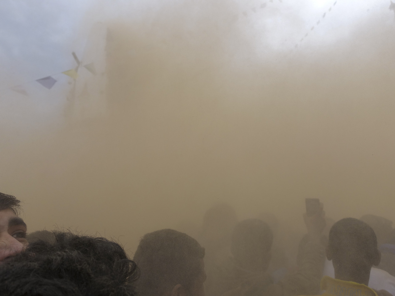 물론 사진을 찍을 여유도 없다. 다른 사진을 찍으려 카메라 셔터를 누르려던 찰나에 지진이 났고 놀란 나머지 손으로 셔터를 꾹 눌러 몇 장의 사진이 남아있을 뿐이다. 정말 웃픈 순간의 기록이다. 첫 진동이 끝나고 바라본 카트만두 시내는 먼지가 뿌옇게 올라오고 있었다. 이 장면을 보자 뭔가 큰일이 났다는 것을 실감할 수 있었다.