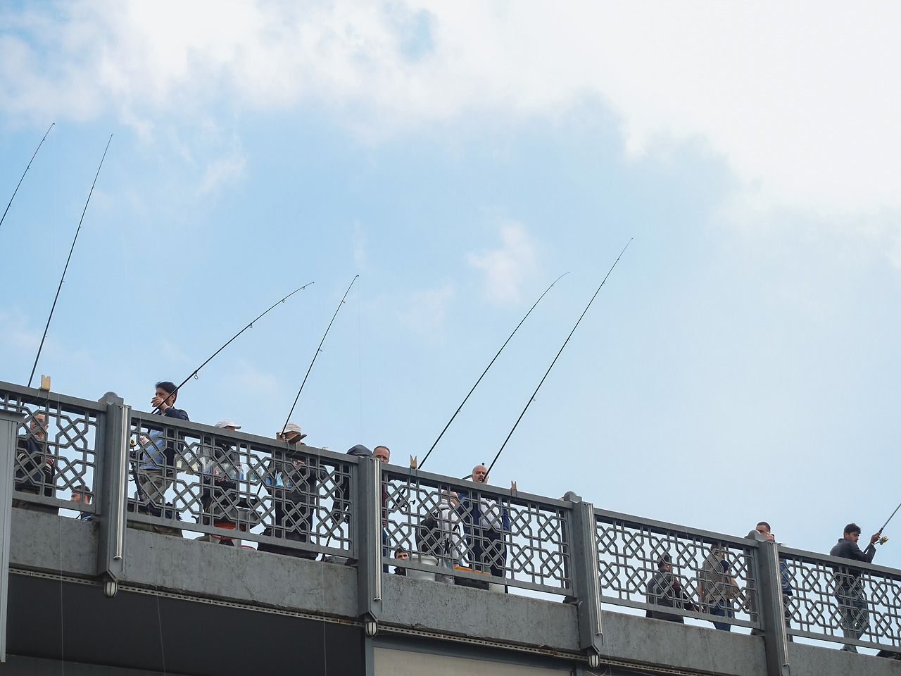 다리 위, 밑 그리고 계단까지 물만 보이면 낚싯대를 던집니다. 여기서 잡은 생선으로 고등어 케밥을 만드는 건지는 모르겠지만 낚시꾼들이 정말 많습니다. 우리나라로 치면 서울 한강 다리에서 낚시를 하는 셈이죠.