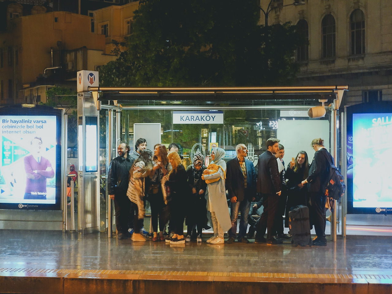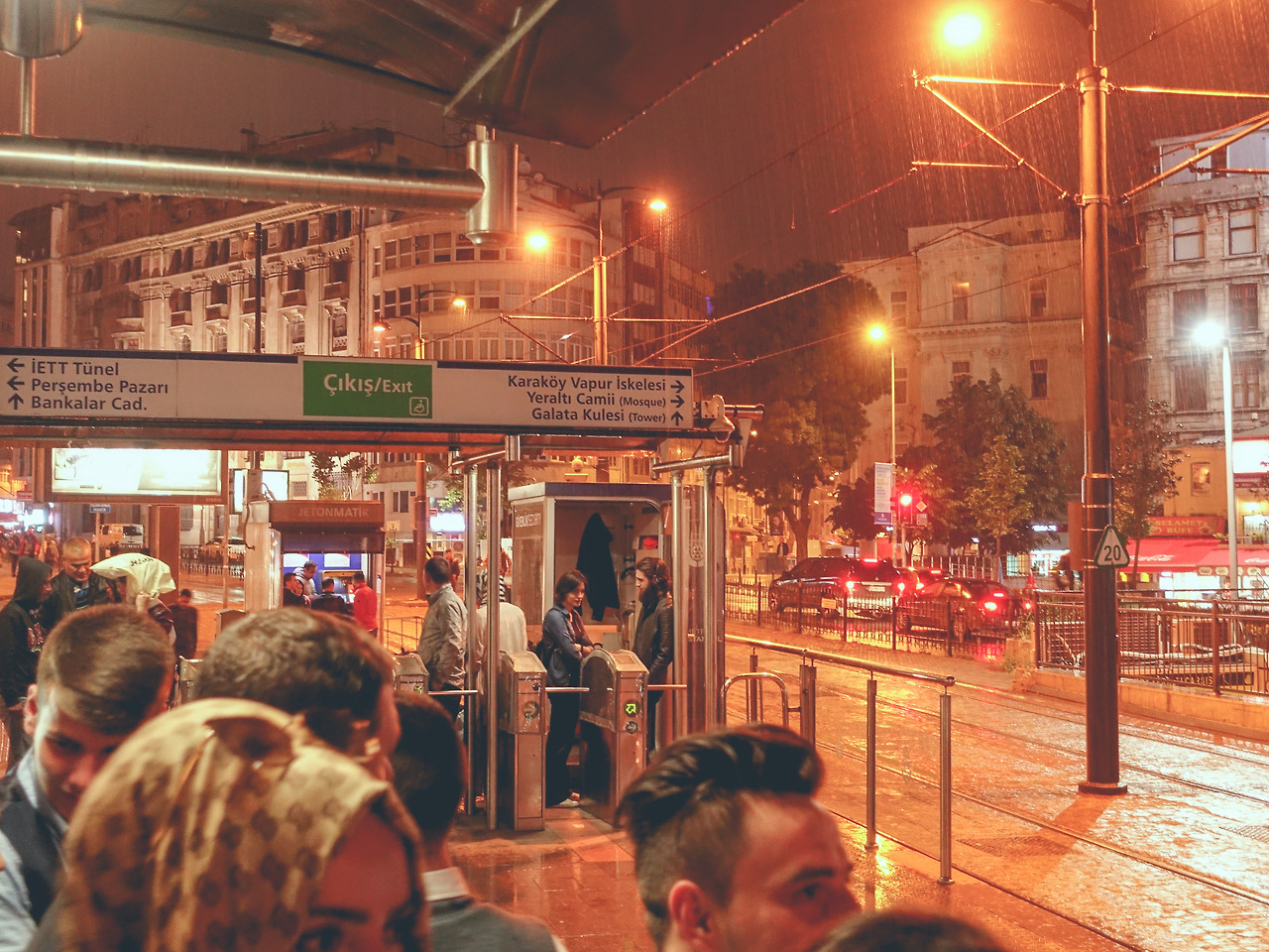 갈라타 타워를 들렀다 숙소로 돌아가는데 난데없이 비가 쏟아졌습니다. 당연히 우산은 없었고 당황한 얼굴이 많이 보이는 것 보니 비가 올 걸 몰랐던 건 우리만이 아닌 것 같았습니다. 그날따라 좋아하는 하얀 신발을 신은 저는 이 신발을 어떻게 해야 할지 몰랐습니다. 여행 중에 신으려고 아껴둔 신발인데 시작부터 이런 비를 만나니 당황스러웠습니다. 소낙비는 금방 그치니까 빨리 그치길 바라며 재빨리 트램 정류장으로 뛰어갔습니다. 소낙비가 아녔는지 그칠 줄 모르고 비는 계속 내렸습니다. 예상 밖이었지만 비가 썩 나쁘지 않았습니다.