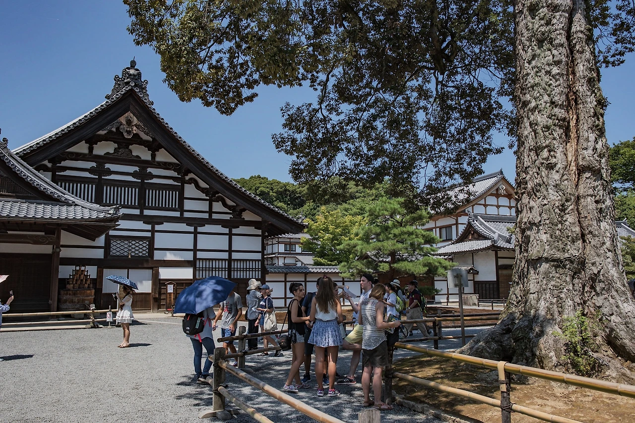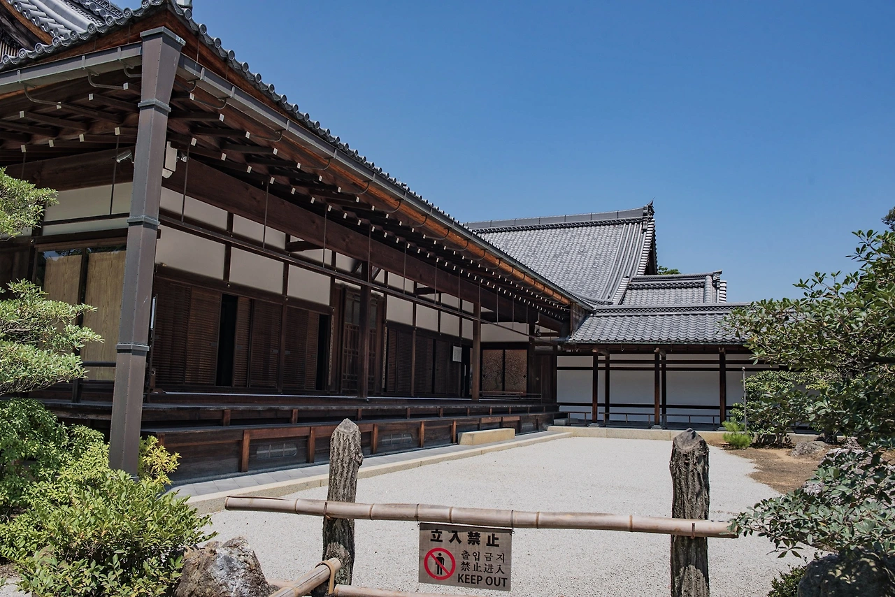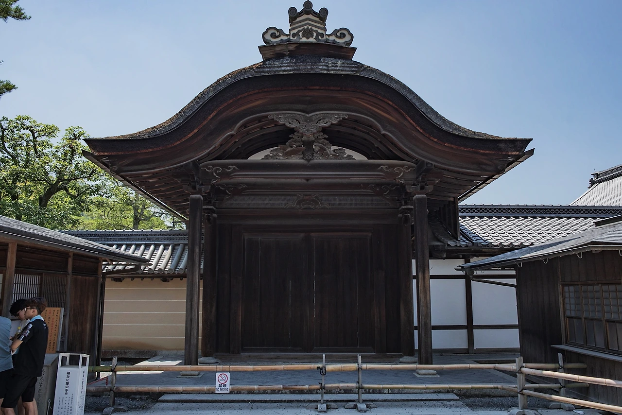 로쿠온지는 세계문화유산으로 입장료(500엔)이 있는데, 사찰 내부를 볼 수는 없고 금각이 있는 지천회유식 정원 일대만 둘러볼 수 있다. 부적처럼 생긴 일종의 입장권을 받고 정원으로 나가면 넓은 연못인 교코지(거울 연못) 가에 서있는 황금빛 누각을 만난다. 금각의 모습은 여전했지만, 겨울의 차가운 느낌이 만연했던 그 때와 뜨거운 태양 밑에 녹음이 푸르른 이번은 사뭇 분위기가 달랐다. 기억이 흐릿해져 사진에만 의존하게 됐던 것인지, 꽤나 멀리 작게 보일 것이라고 생각했던 금각의 인상은 다소 선명하고 가까웠다. 오래된 연인을 오랜만에 다시 본 듯한 익숙함과 생소함 사이에서 여러 감정이 교차했다.