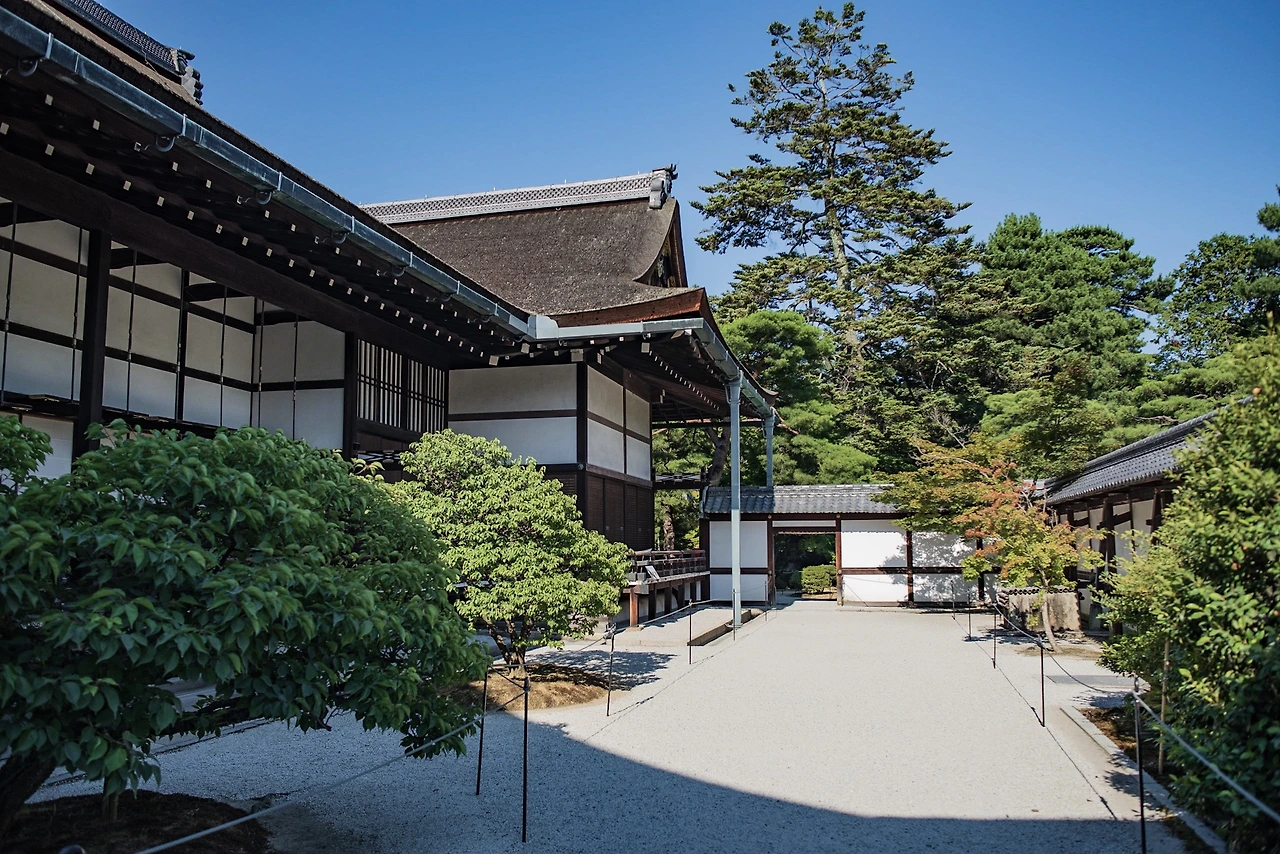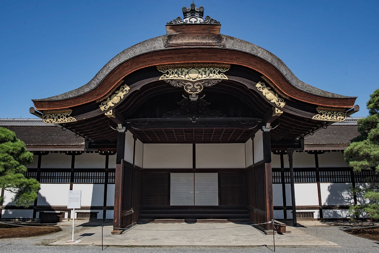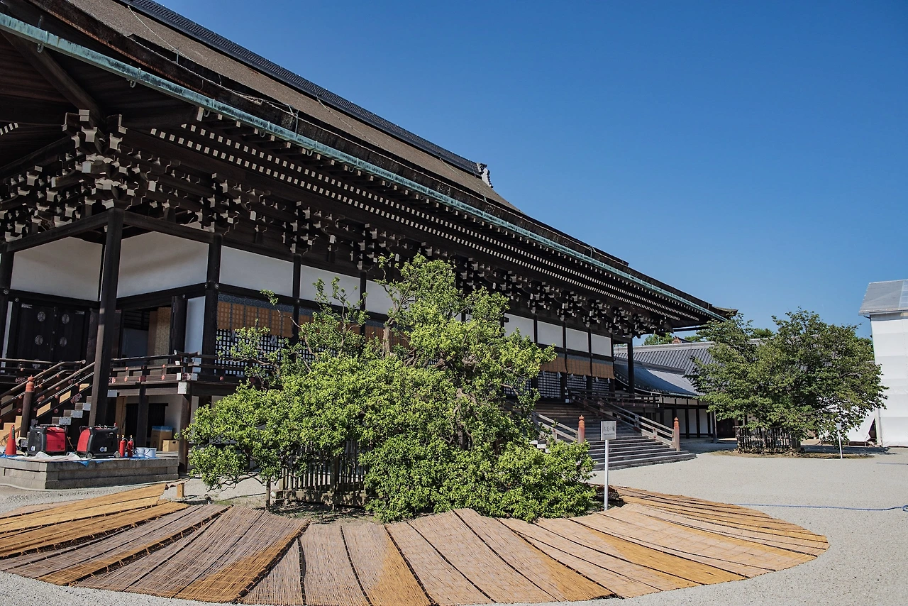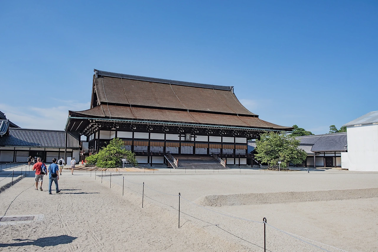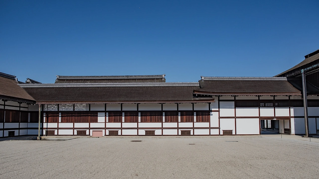 자금성과 경복궁에 비교하자면 소박하기 그지 없다. 소박함이야 일본 문화의 정서려니,싶다가도 일본 각지의 거대한 천수각과 사찰 금당을 보고 있노라면 천황의 정전인 시신덴(자신전)은 한없이 초라해보인다. 닌나지의 금당(옛 시신덴)과 비교했을 때 현재의 시신덴은 비교할 수 없을만큼 거대해졌다. 하얀 모래가 깔린 안뜰(단테이)은 정갈하게 정리돼 있고, 일본 황실을 뜻하는 귤나무(우콘)와 벚나무(사콘)는 황실의 엄숙함과 권위를 뽐낸다. 동시에 버려진 궁전의 빈 공간은 허무한 권력의 무상함으로 가득하다.