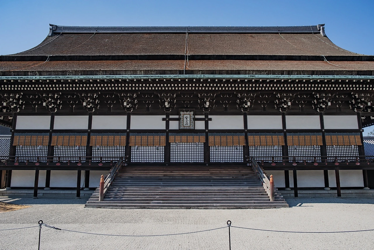 시신덴. 고쇼의 정전이다. 중요한 국가의식이 열리는 건물이다. 아키히토 천황이 도쿄에서 즉위하기 전까지는 모두 이곳에서 즉위식을 가졌다.