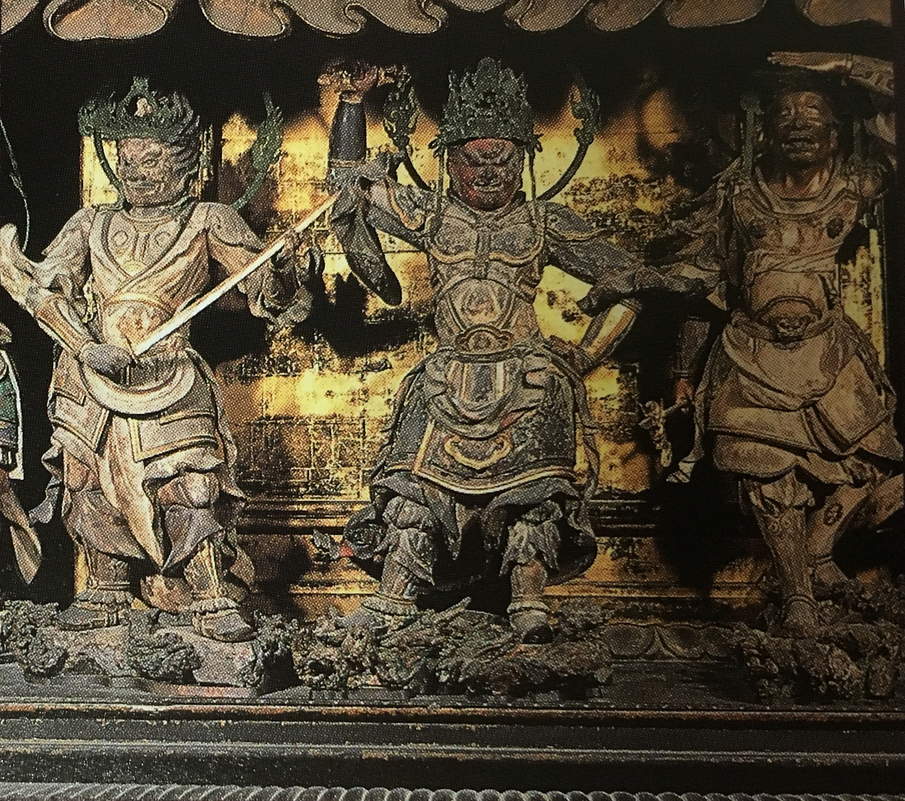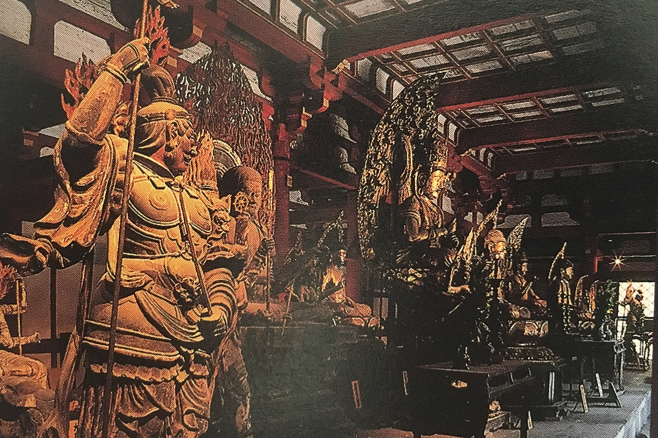 도지가 유명한 것으로는 오중탑 말고도 금당과 강당의 불상들이 있다. 금당에는 약사여래 본존불과 십이신장상이 있다. 금당의 크기도 크기인 만큼 불상의 규모도 굉장하다. 중앙의 약사여래 좌상은 십이신장이 받들고 있으며, 좌우로 협시보살 입상이 있다. 사진으로는 그 크기가 가늠이 잘 가지 않지만 매우 크다. 금당 내부는 산쥬산겐도처럼 채색 등의 장식이 전혀 없어 화려한 멋은 없지만 오히려 그렇기에 불상에 좀 더 집중할 수 있는 매력이 있다.