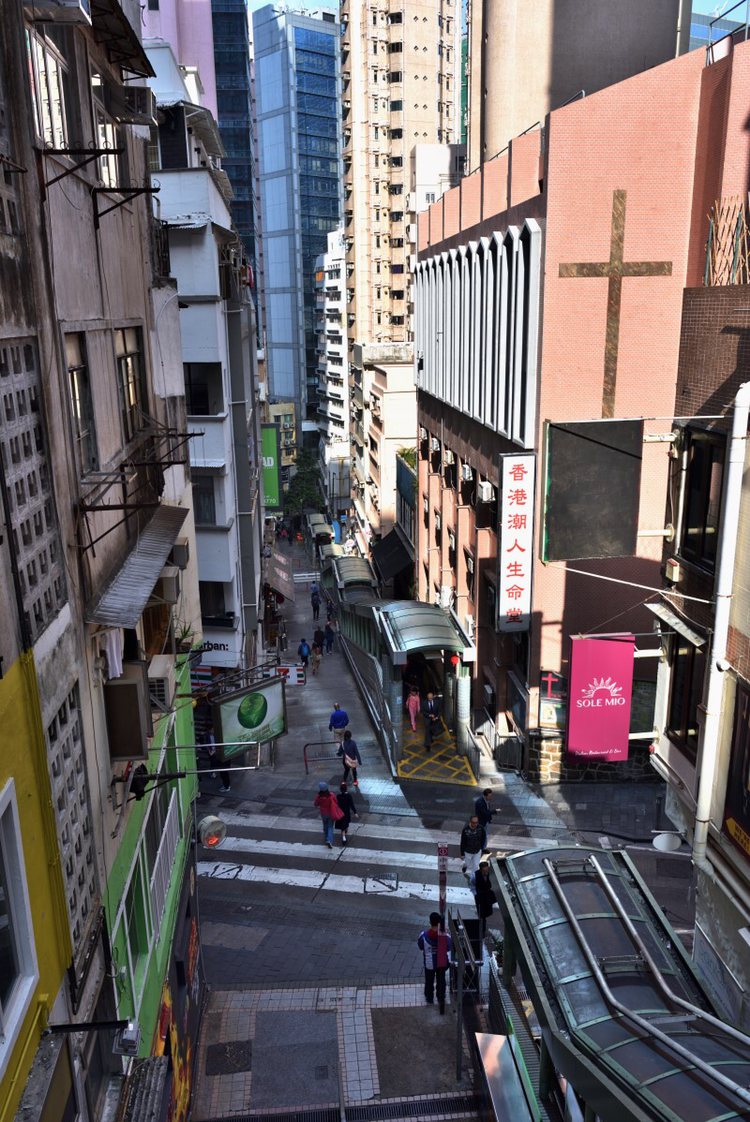 홍콩에 도착하자마자 침사추이로 갔다. 미리 홍콩에서 놀고 있던 홍콩 마카오 여행 동행들과 만난 후 도보 10분 거리의 호스텔로 향했다. 짐을 풀고 슬슬 지하철을 타고 미드레벨 에스컬레이터가 있는 홍콩섬으로 건너갔다. 바다를 건너 도착한 홍콩섬은 좁은 도로가 지나치게 높은 마천루들과 어울리지 않는 조화를 이루고 있었다. 여태까지 다녀본 도시들 중에서 본 적이 없는 모습이 굉장히 생소했다. 온통 이 차선 일방통행 길인데다 차량은 또 얼마나 많은지, 교통지옥이라는 말이 떠올랐다. 경사는 또 왜 이렇게 가파르게 긴지, 부산 이후로 산비탈에 있는 도심은 처음이었다. 그 모습이 굉장히 신기했는데 미드레벨 에스컬레이터가 없었으면 정말 살기 힘들었겠다는 생각이 든다.