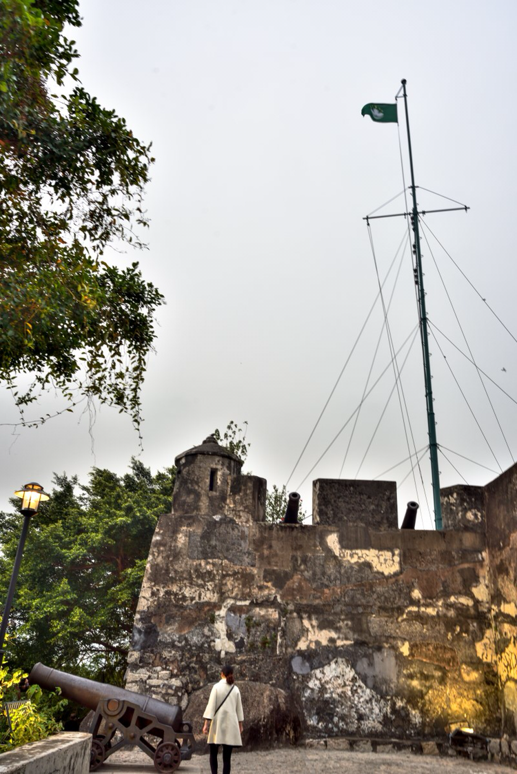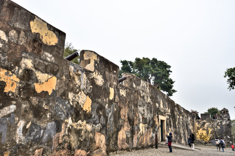 예전에 티브이에서 포르투갈은 바닥을 타일로 깔아서 모자이크처럼 문양으로 넣는 것을 본 적이 있는데 확실히 마카오도 모자이크로 그려져있는 길들이 많았다. 게다가 신고전주의적 성당들과 노랗게 색칠해져있는 건물들은 정말로 이곳이 중국이 아닌 것 같은 느낌을 줬다. 세나도 광장과 성 도밍고 성당을 지나 좀 걸으니 폰테 요새가 나왔다.