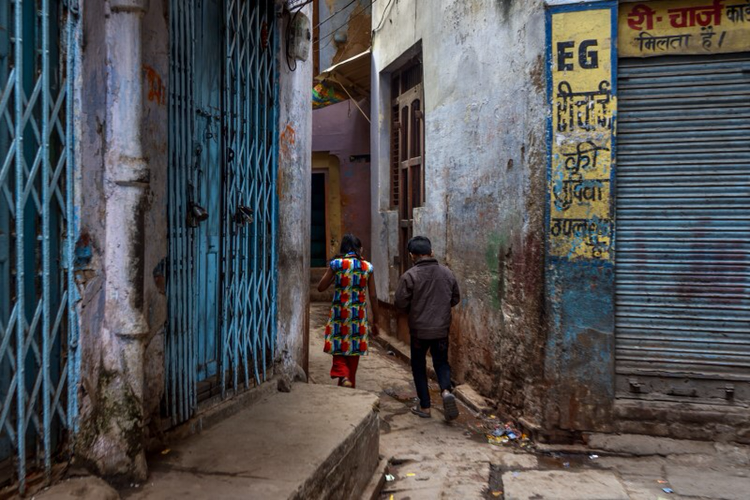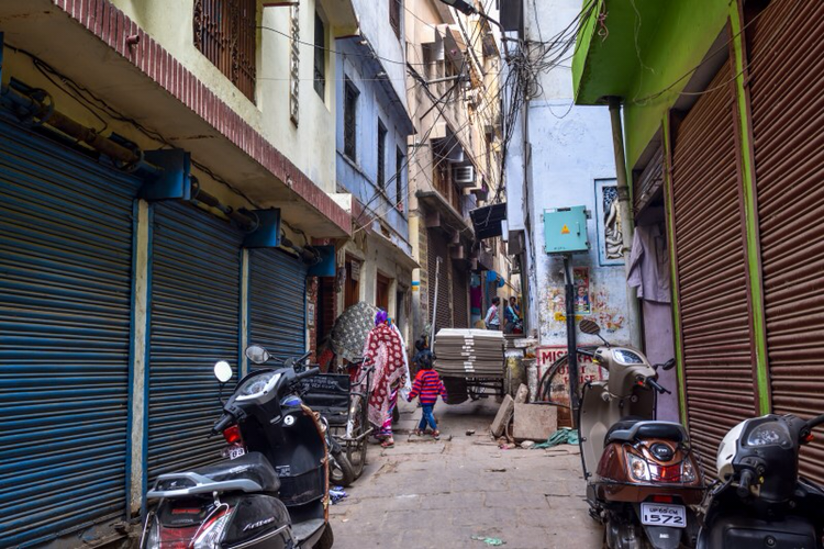 콜카타와는 또 다른 의미의 혼란스러운 도로를 달리곤 얼마 안 가서 기사가 골목 초입에 우리를 내려줬다. 릭샤왈라는 5분 정도 잘 걸어들어가라는 말과 함께 먼지 속으로 사라졌다. 드디어 구글 지도에도 나오지 않는 골목길과의 사투가 시작됐다.