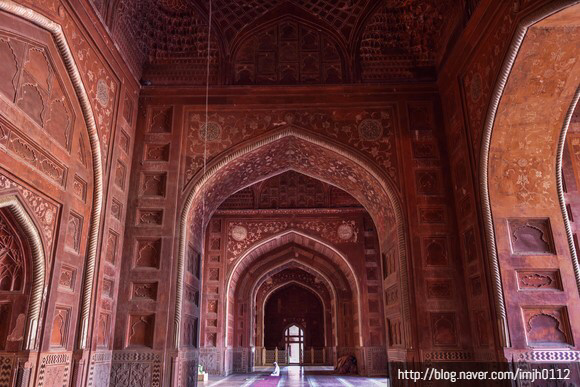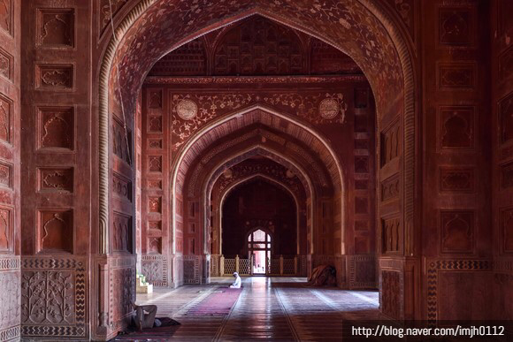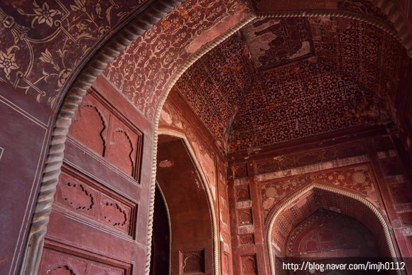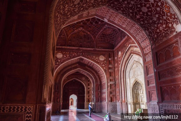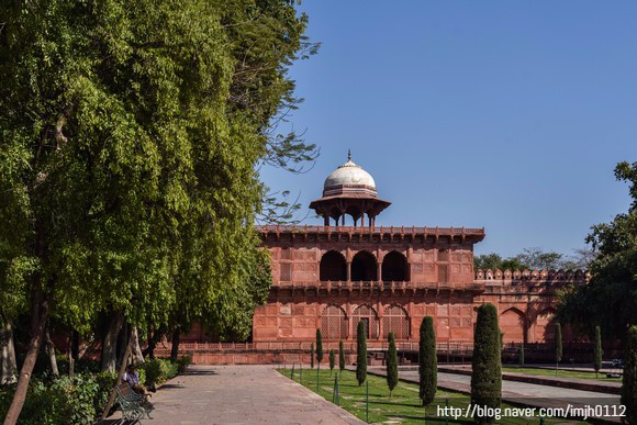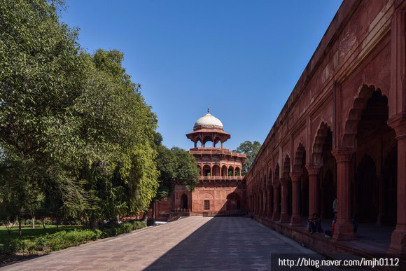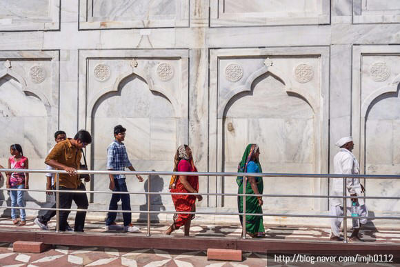 타지마할의 이야기는 너무 유명해서 많은 여행객들이 알고 있을 터. 무굴제국의 문화적, 건축적 전성기를 이룩한 5대 황제 샤자한은 너무나도 사랑하던 황후 뭄타즈 마할의 죽음을 애도하기 위해 세상에서 가장 아름다운 건축물을 만들기로 결심했다. 2만여 명의 인부를 동원해 장장 22년간 거대한 건축물을 만들어 낸다. 이 때 무굴 제국 상당 부분의 부를 탕진시키게 되는데 그 이유 때문인지는 알 수 없지만 아들 아우랑제브 황제에 의해 샤자한은 남은 생동안 아그라 성에 유폐되고 만다. 아그라포트의 무삼만 부르즈에 유폐된 채 강 너머의 타지마할을 바라보며 죽음을 맞이했을 샤자한을 생각하면 안쓰럽다가도 한 나라의 지도자의 역할에 대해 생각하게 한다.