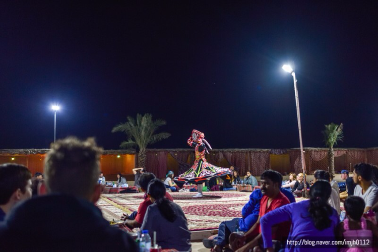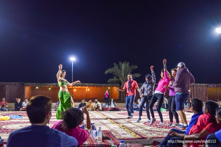 캠프에서 중동식 뷔페로 저녁식사를 하면서 일종의 디너파티가 진행됐다. 남녀의 무용수가 각각 나와서 화려한 춤을 추면서 어둠이 내려앉은 사막 위의 캠프에 활기를 더했다. 그 이후의 백미는 디너파티가 끝난 후 깜짝 소등이 되며 바라보게 된 사막의 밤 하늘. 하늘을 수놓은 수많은 별들을 보며 한참을 아무 말도 할 수 없었다. 게다가 달빛이 이렇게나 밝았다니.